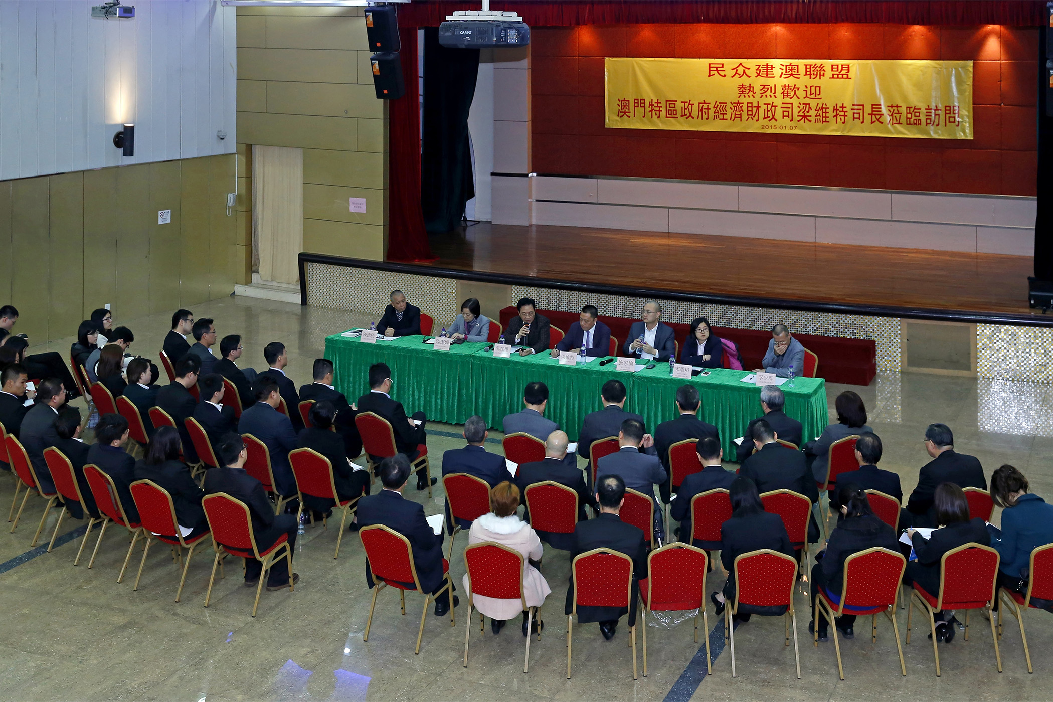 民眾建澳聯盟有關負責人注意到澳門經濟現正處於調整期,博彩收入連續七個月下跌可能影響公共收入,建議政府更多元化的財政儲備投資策略,盡力增加財政儲備投資回報收益。政府將要修改《預算綱要法》,該會建議政府未來對公共工程整體預算開支作出嚴格的控制。有關負責人還反映了外僱聘用及困擾中小企業經營的問題,包括租務法中的出租房屋稅、人力資源供應、在舊區開業能源供應申請、餐飲食肆牌照申請等問題,期望相關政府部門優化相關行政程序及手續,為企業創造更佳的營商環境。