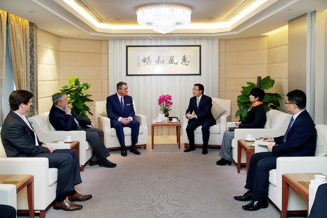 社會文化司司長譚俊榮今(2)日在政府總部會見澳門仁慈堂婆仔屋領導層,就澳門文化政策與文創產業的發展等方面議題交流意見。
