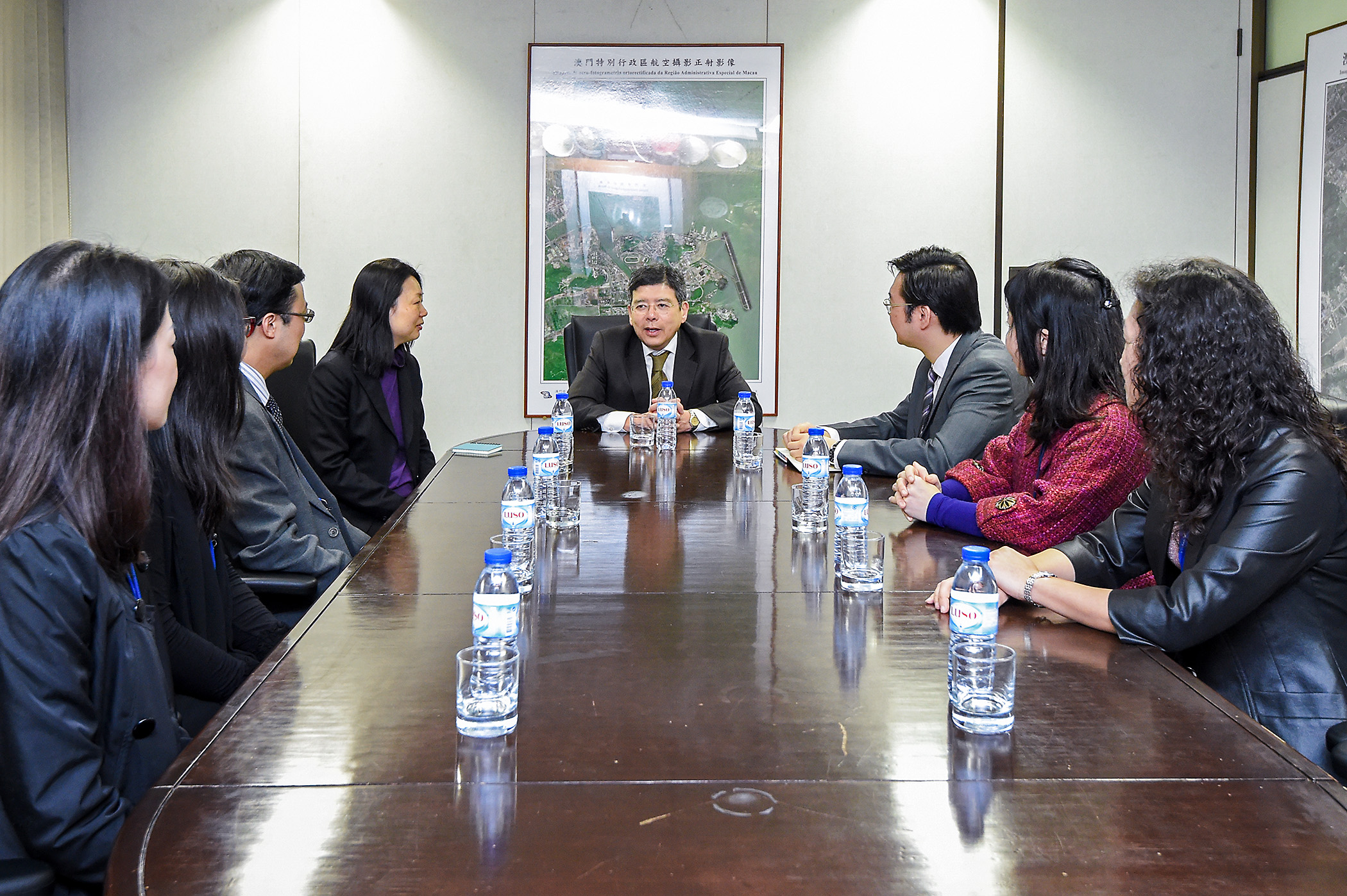 運輸工務司司長羅立文在視察海事及水務局期間,聽取部門主管人員介紹所屬範疇工作。他表示,隨著中央批覆啓動澳門習慣水域管理範圍的研究,希望部門及早做好相關的預備工作。羅立文也在局長黃穗文、副局長黃錦輝陪同巡視了港務局大樓,並與在大樓內工作的人員交談了解日常工作。