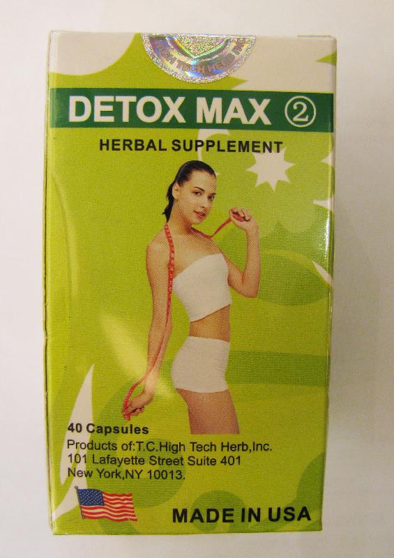 根據香港衛生署的公告,產品“Detox Max”被摻雜有西藥成份“安乃近”(dipyrone)及“雙氯芬酸”(diclofenac),故該署呼籲市民不要購買及服用上述產品。而根據紀錄,衛生局並沒有批准過上述產品進口及投放本澳市場。