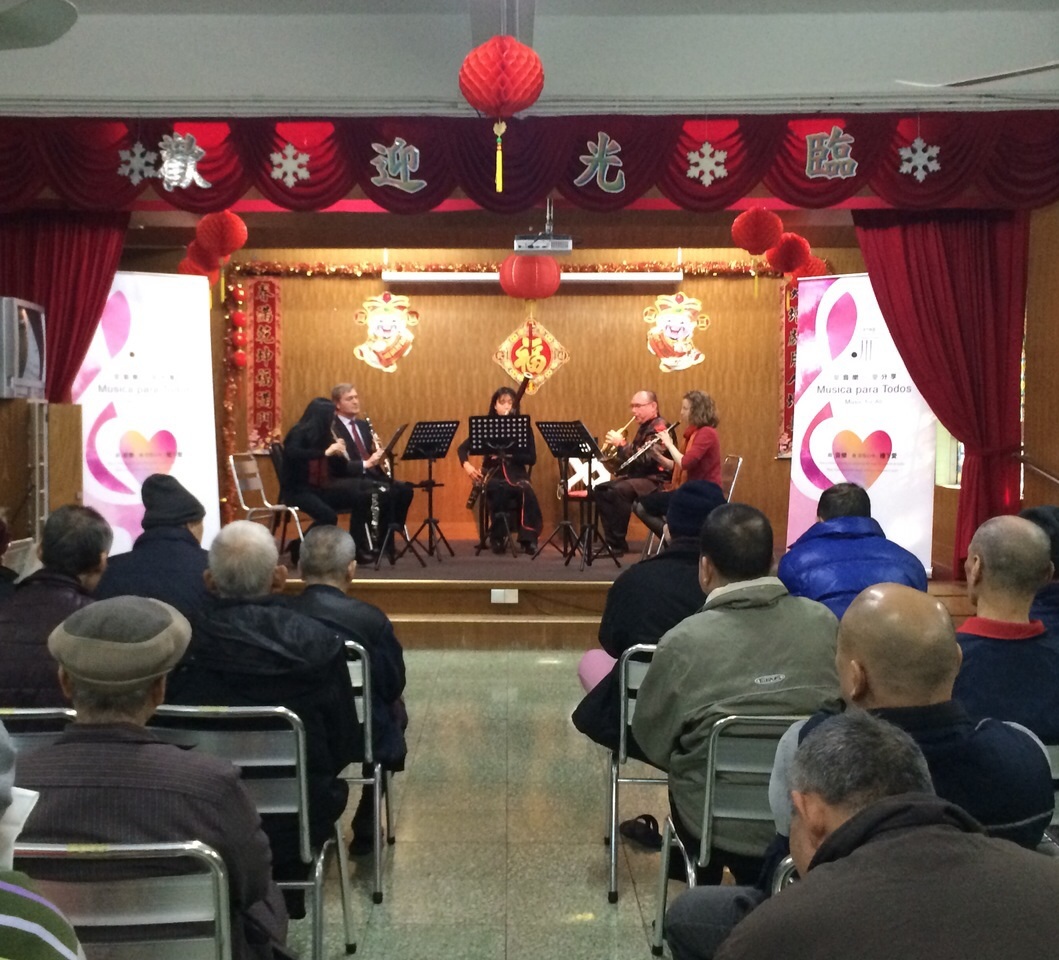 文化局澳門樂團上周走訪多間老人中心及安老院,為耆老及弱勢人士舉行《愛音樂‧愛分享》系列《祥和喜慶迎新春》音樂會,與觀眾分享新春喜慶氣氛和溫暖感受,宣揚跨代共融與和睦共處的關愛訊息。