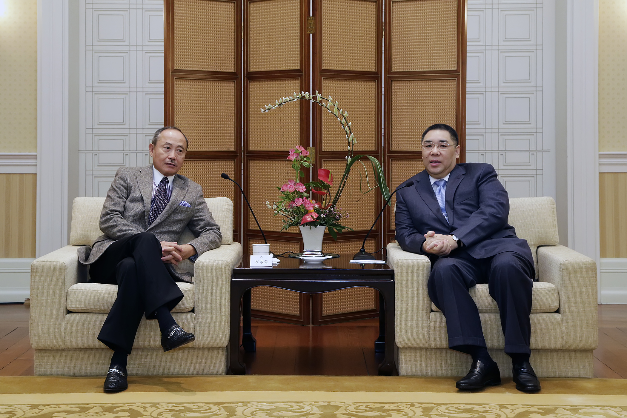 行政長官辦公室主任柯嵐、澳門退休、退役及領取撫恤金人士協會理事長馬慈國及副理事長余漢釗參加會見。