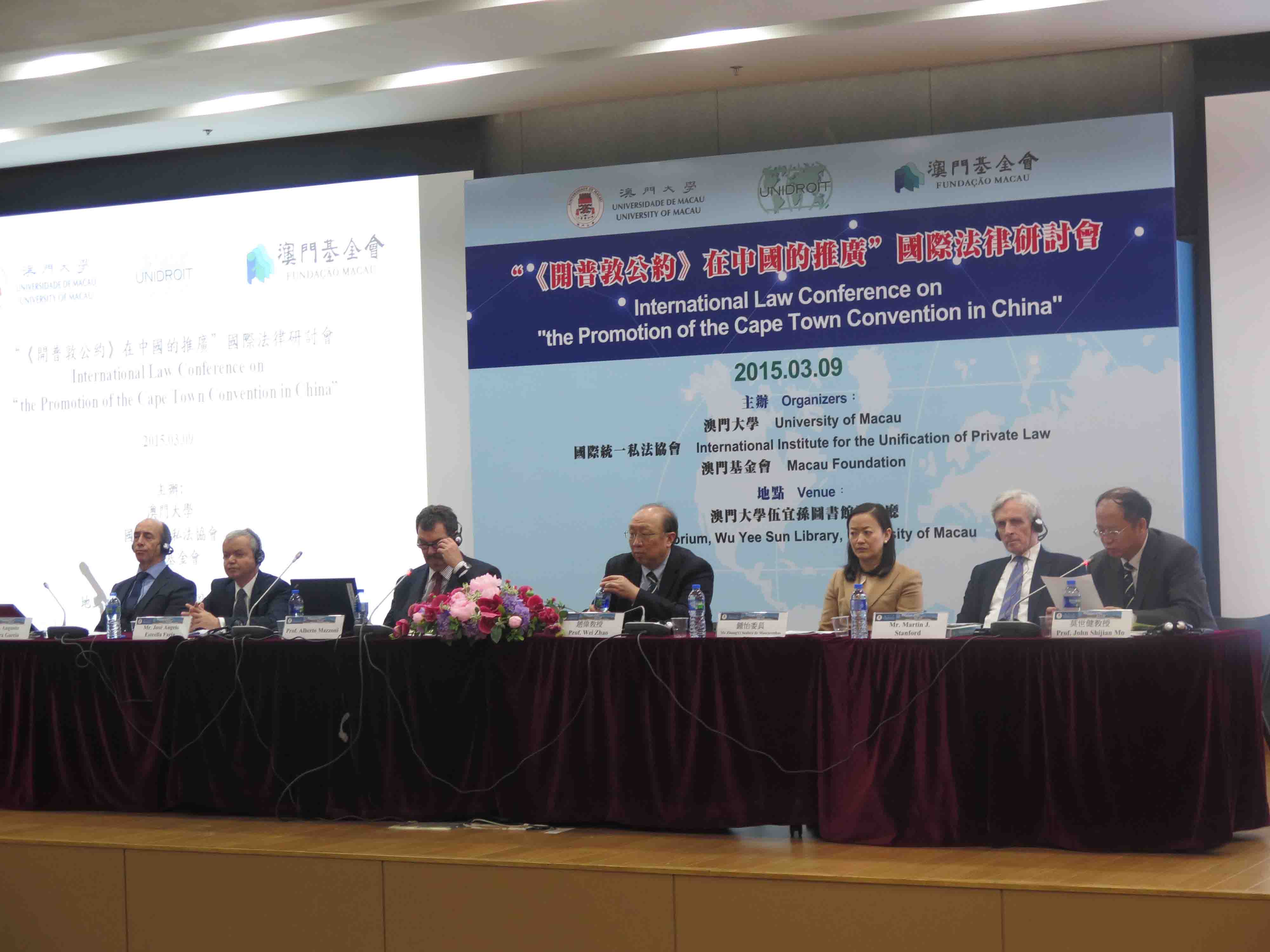會議由國際統一私法協會主席Alberto Mazzoni、澳門基金會行政委員會鍾怡委員、澳大校長趙偉教授擔任主禮嘉賓,請來了國際統一私法協會秘書長Angelo Estrella-Faria以及前副秘書長Martin J. Stanford主講,也邀請了相關領域的專家,包括上海市華東政法大學國際航運法律學院于丹副教授、香港大學法學院趙雲教授、澳大法學院院長莫世健教授和中國鐵道部經濟規劃研究院孫林研究員。