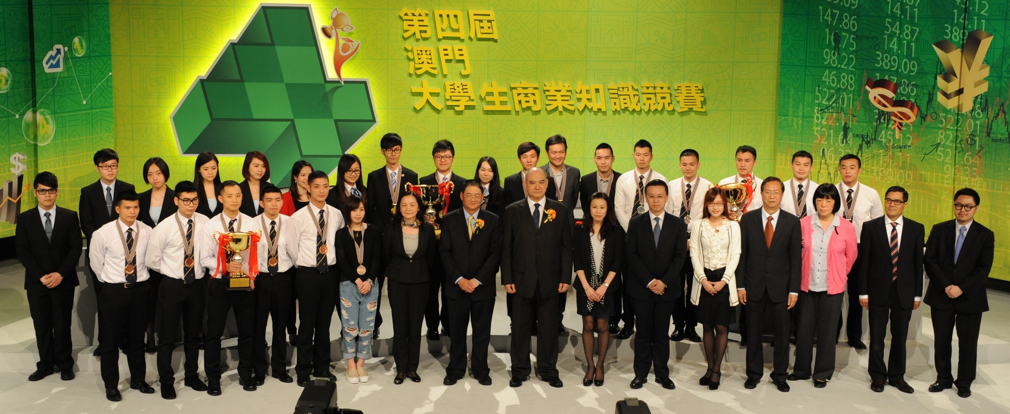第四屆“澳門大學生商業知識競賽”已於3月29日假澳門綜藝二館舉行,來自本澳7間大專院校共14支賽隊經過四場初賽及一場決賽的競逐,最後由澳門大學聆曦隊奪冠,亞、季軍分別由澳門保安部隊高等學校A隊及澳門保安部隊高等學校B隊奪得。