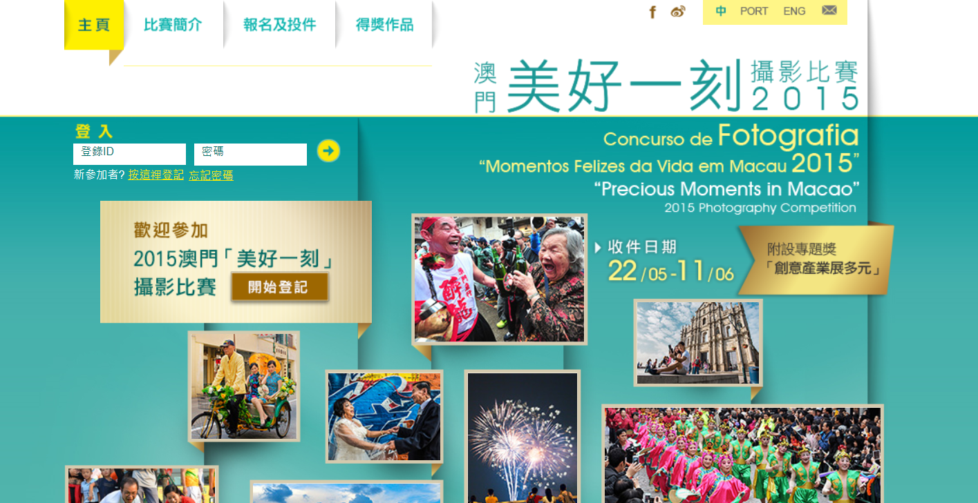 2015澳門「美好一刻」攝影比賽網站現已開通!本屆附設的專題獎以「創意產業展多元」為題,期待攝影愛好者更多美好的作品! 收件日期由5月22日開始,請踴躍投件。