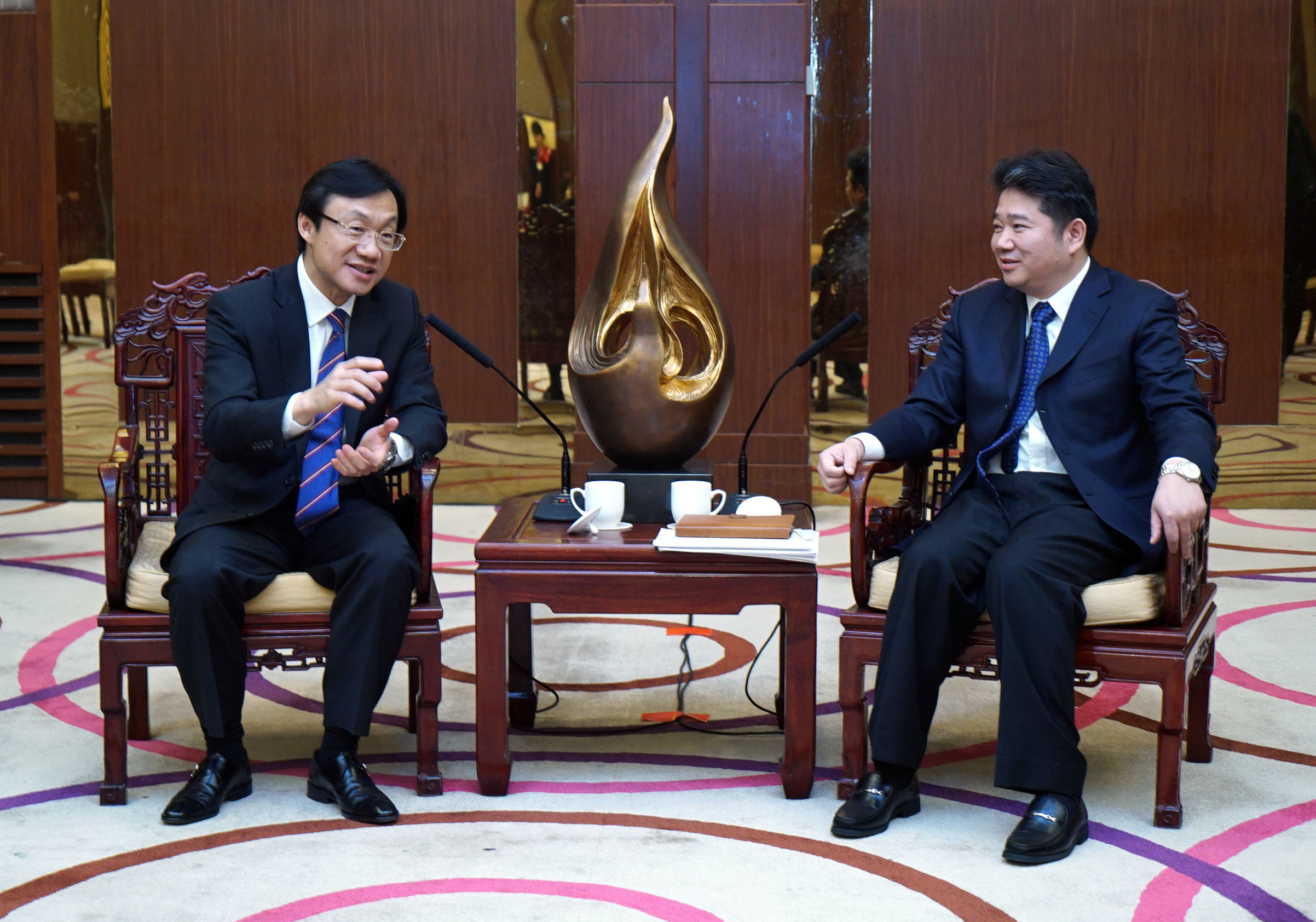 21日下午,譚俊榮與文化部副部長丁偉會晤。雙方共同回顧了澳門回歸祖國十五周年慶祝晚會上的緊密合作。對文化部一直以來對澳門文化事業及文化遺產保護的支持,譚俊榮表示誠摯感謝。