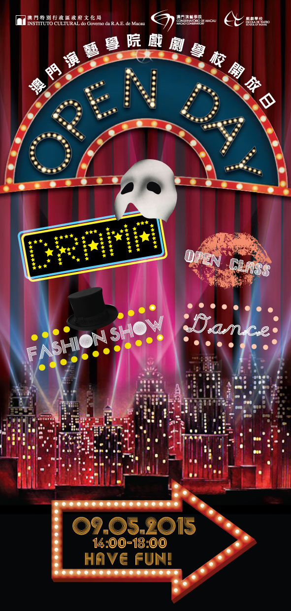 文化局澳門演藝學院戲劇學校將於本周六(五月九日)下午二時至六時舉辦一年一度的開放日,以增加市民接觸戲劇藝術的機會。開放日以歡樂的“百老匯”為主題,節目豐富多彩,歡迎市民蒞臨參觀。