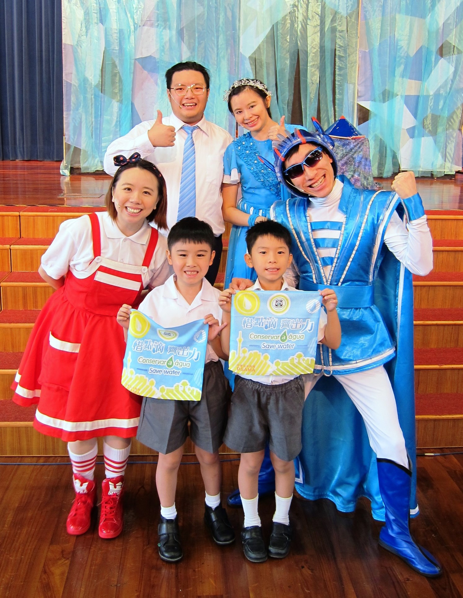 節水從點滴累積,教導從幼小開始,加強宣傳教育是《澳門節水規劃大綱》重點工作之一。因此海事及水務局今年打造了校園節水宣傳劇《威水超人》,利用富想像力的情節,配合節奏輕快的歌舞和互動遊戲環節,講述節水英雄拯救人類的故事。宣傳劇推出後學校反應熱烈,至今已有26間學校報名參與,將巡迴演出34場,向約4,300名小學生進行節水教育。