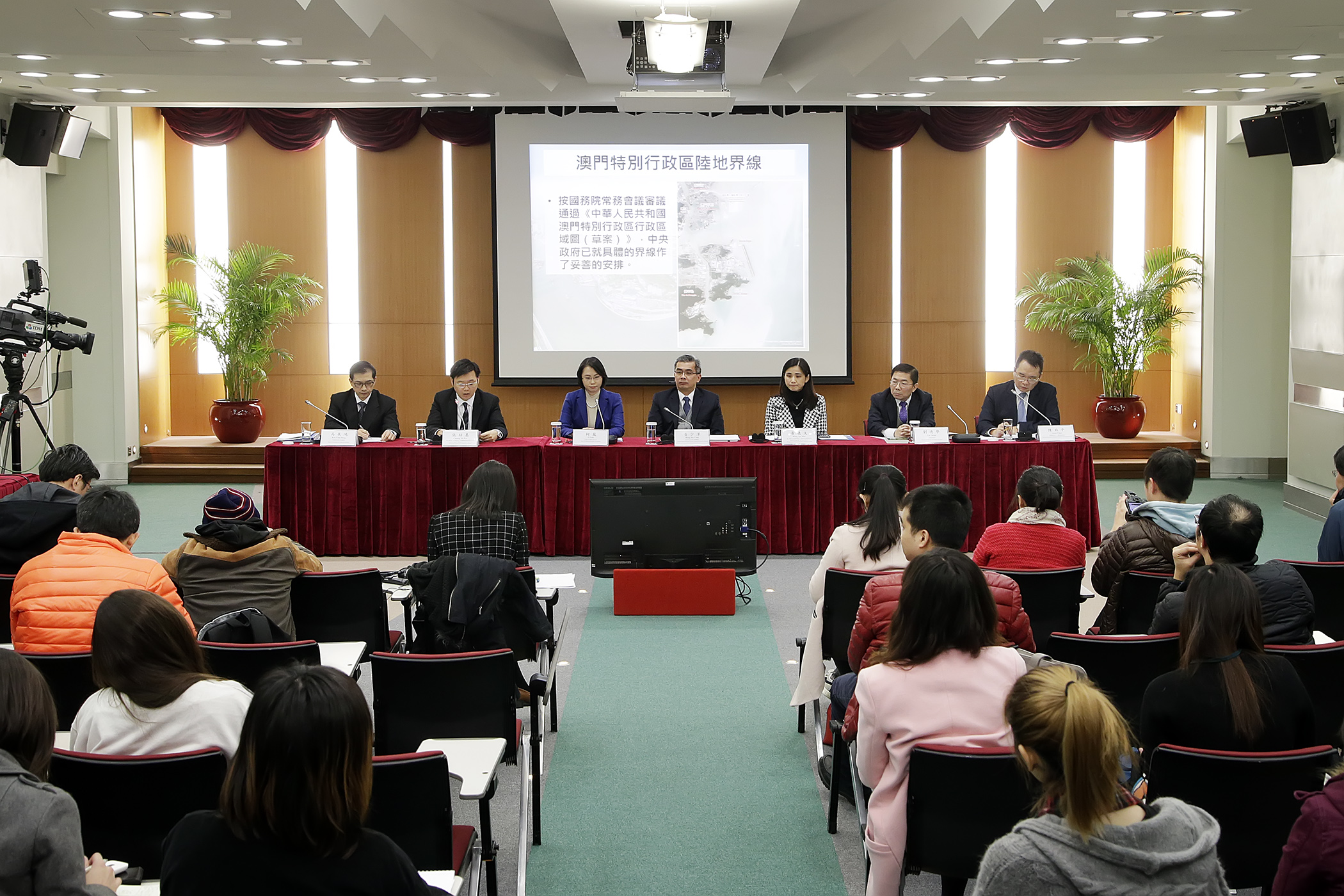 新聞發佈會晚上8時30分在政府總部召開,由政府發言人陳致平主持,行政長官辦公室主任柯嵐、保安司司長兼海關關長黃少澤、澳方聯合工作組組長、海事及水務局局長黃穗文,以及澳方陸界工作組組長、地圖繪製暨地籍局局長張紹基等先後發言。法務局局長劉德學和行政長官辦公室顧問高展鴻亦有出席。