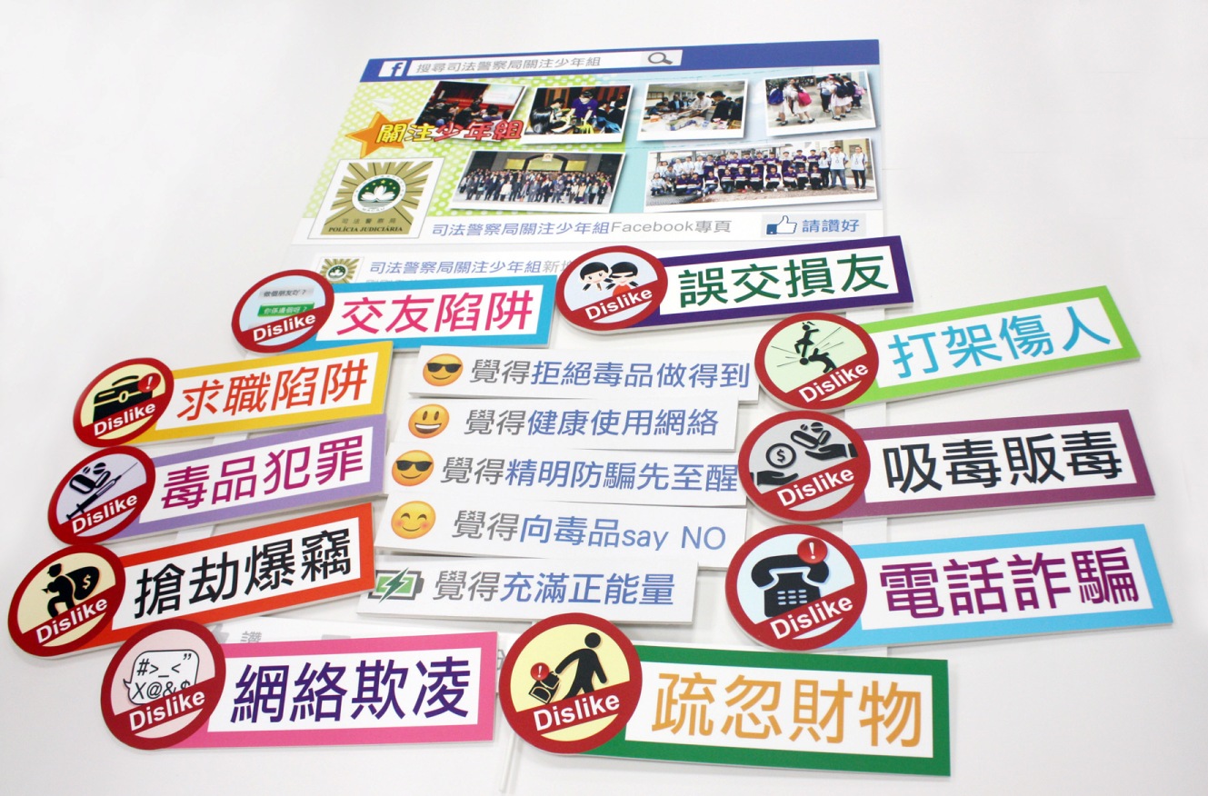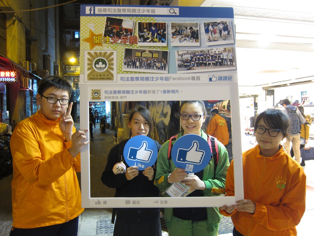 司警局更特別製作了臉書(Facebook)道具,由 “滅罪小先鋒” 學員邀請青少年與他們合照,期後將相片上載至關注少年組臉書專頁,獲邀拍照者在關注該專頁後即可為相片進行標註。青少年反應熱烈,活動現場洋溢活力和歡樂。