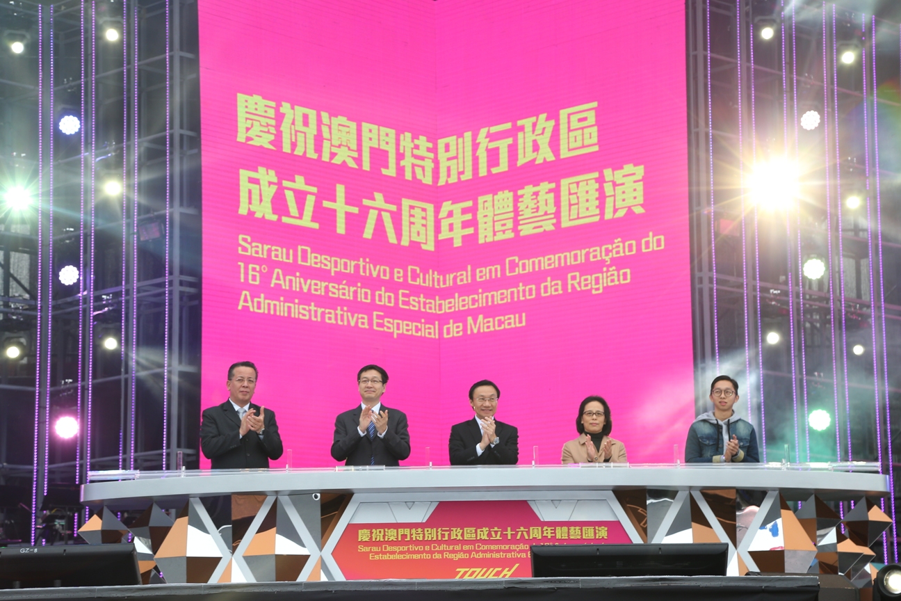 “慶祝澳門特別行政區成立十六周年體藝匯演 - Touch Mi鄭秀文世界巡迴演唱會”於下午二時半舉行開幕式,並由澳門特別行政區政府社會文化司司長譚俊榮博士、中央人民政府駐澳門聯絡辦公室副主任孫達、外交部駐澳門特別行政區特派員公署領事部主任耿麗萍、體育發展局局長戴祖義及市民代表主持開幕。