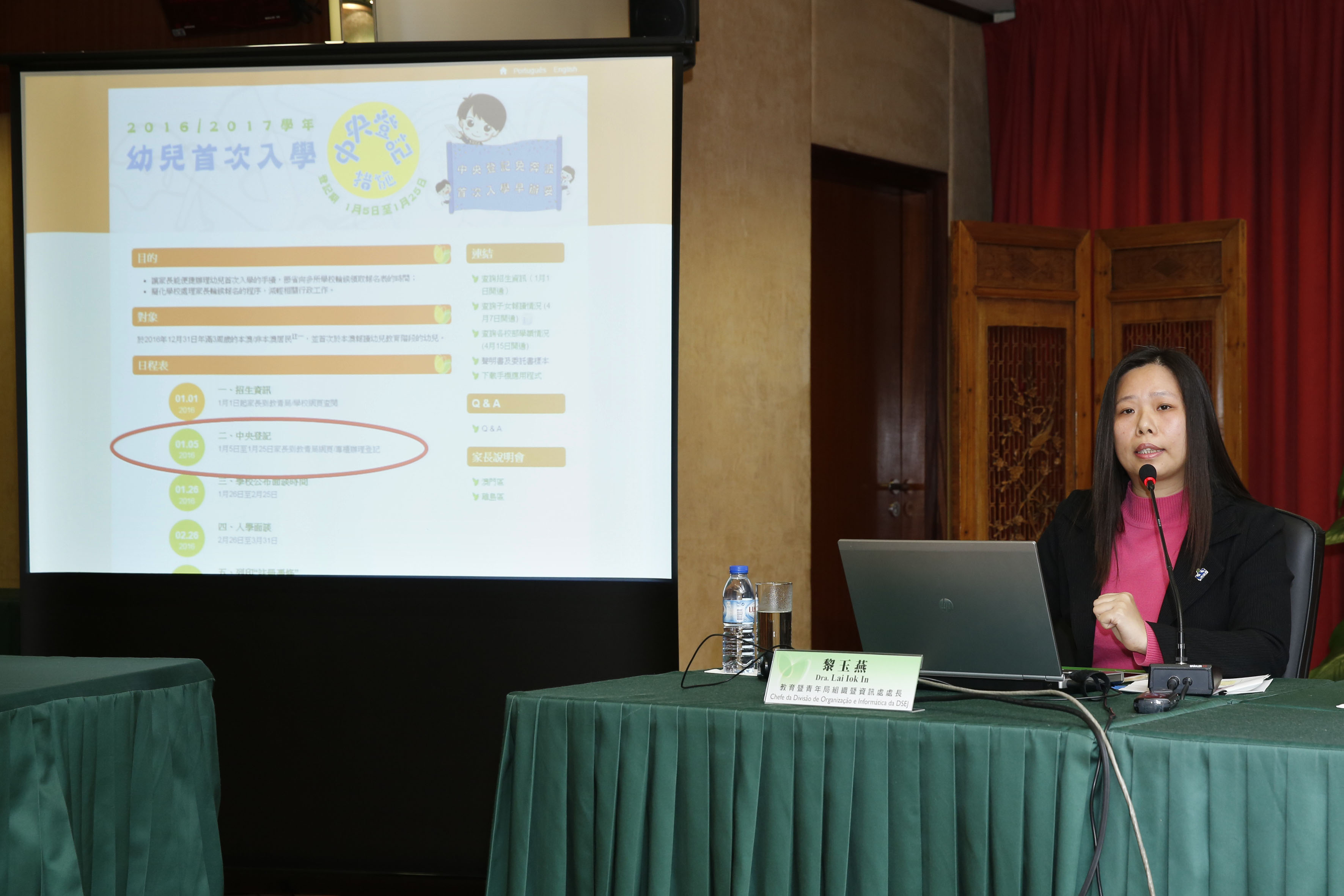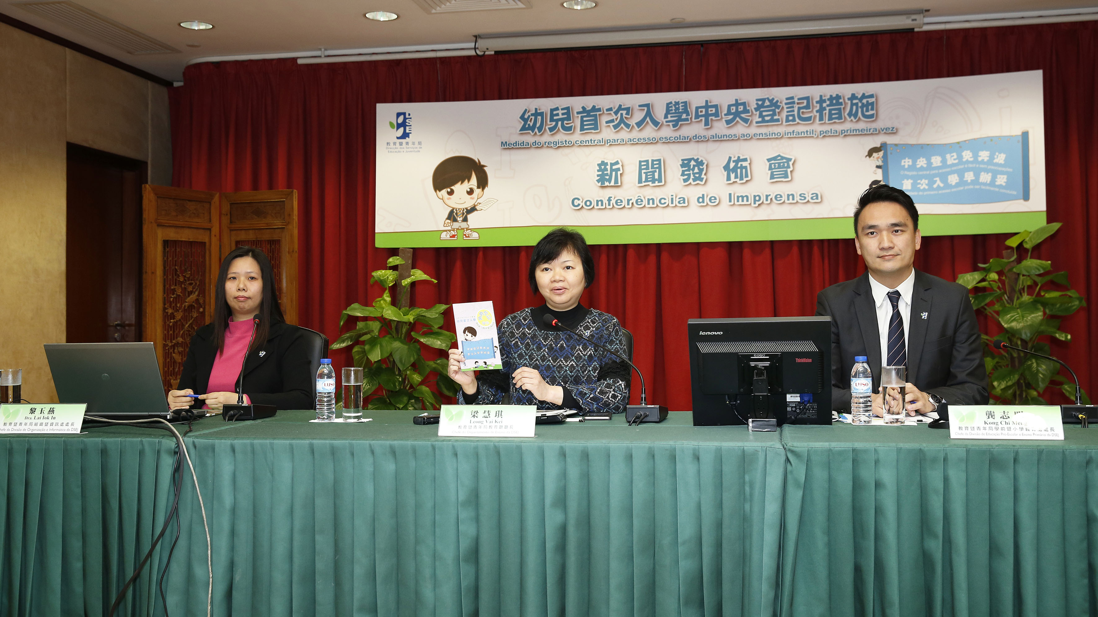 教育暨青年局在12月30日召開新聞發佈會,教育廳廳長梁慧琪、學前暨小學教育處處長龔志明及組織暨資訊處處長黎玉燕出席新聞發佈會。會上介紹了“幼兒首次入學中央登記措施”(下稱:中央登記措施)的重點內容,包括中央登記措施的日程及操作示範。