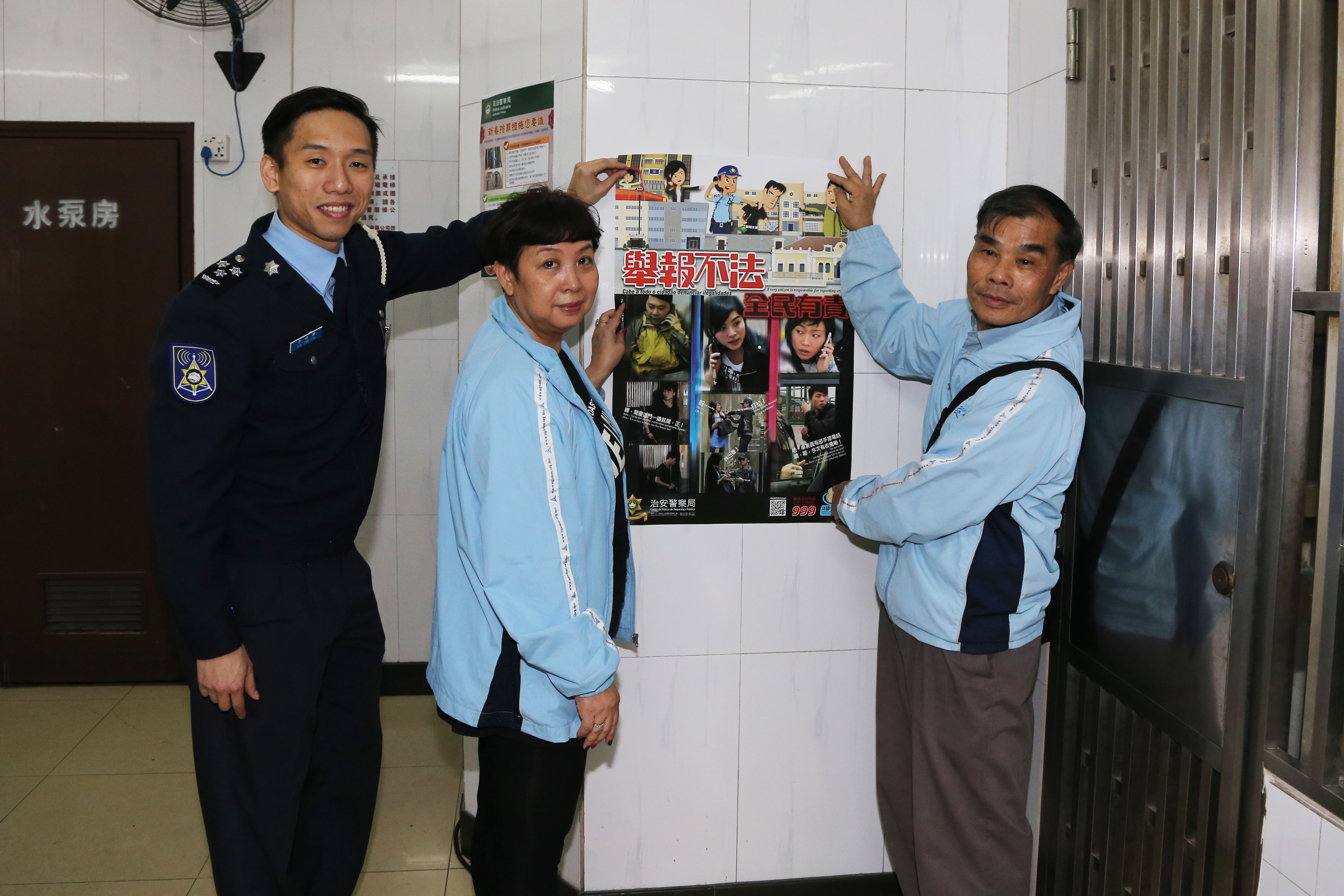 是次活動由治安警察局 行動廳公共關係處李德輝警司、交通廳李勤副警司、澳門警務廳第二警務警司處曾健明警長、澳門街坊會聯合總會大廈管理資源中心秦昶主任、澳門街坊會聯合總會大廈工作委員會林文彬顧問、筷子基坊會陳少佳副秘書長與各大廈業主代表等一行二十多人,向區內大廈住戶及管理員講解慎門戶安全資訊,並沿途向市民及商戶派發有關防罪滅罪的宣傳單張、海報及2016年「警察故事系列」精美座枱曆。