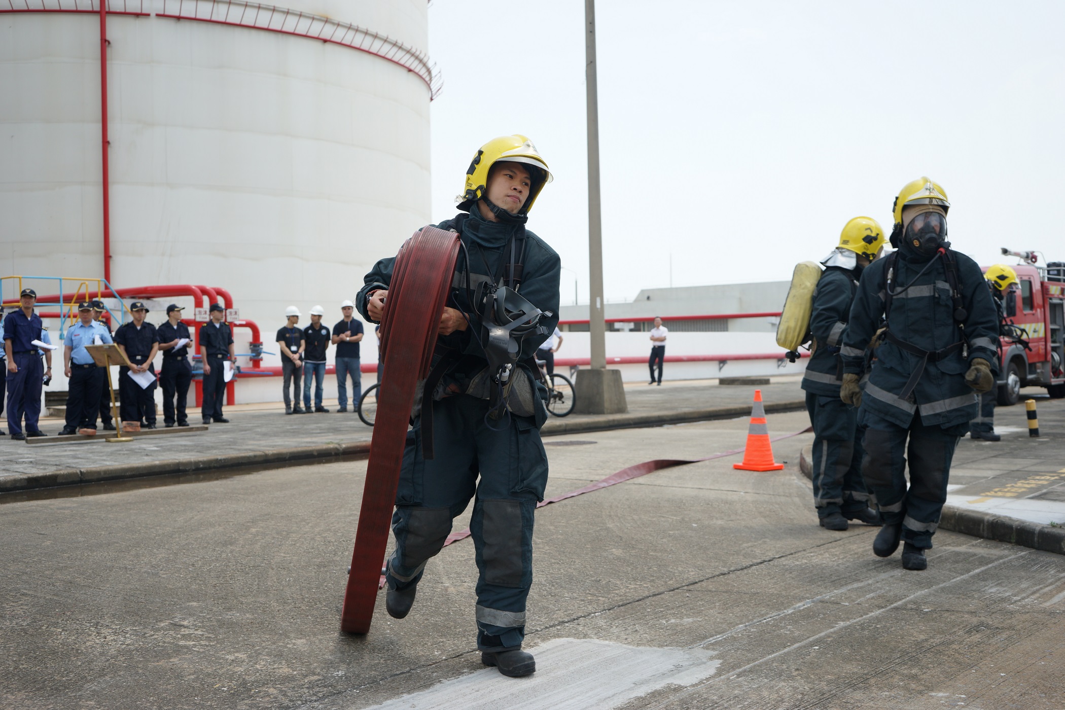 為加強路環九澳油庫在發生事故時的應急工作及協調溝通,消防局於本年05月19日上午10時30分,協助澳門油庫管理有限公司在路環九澳油庫內舉行了一次事故疏散演習,效果良好且達到預期目的。