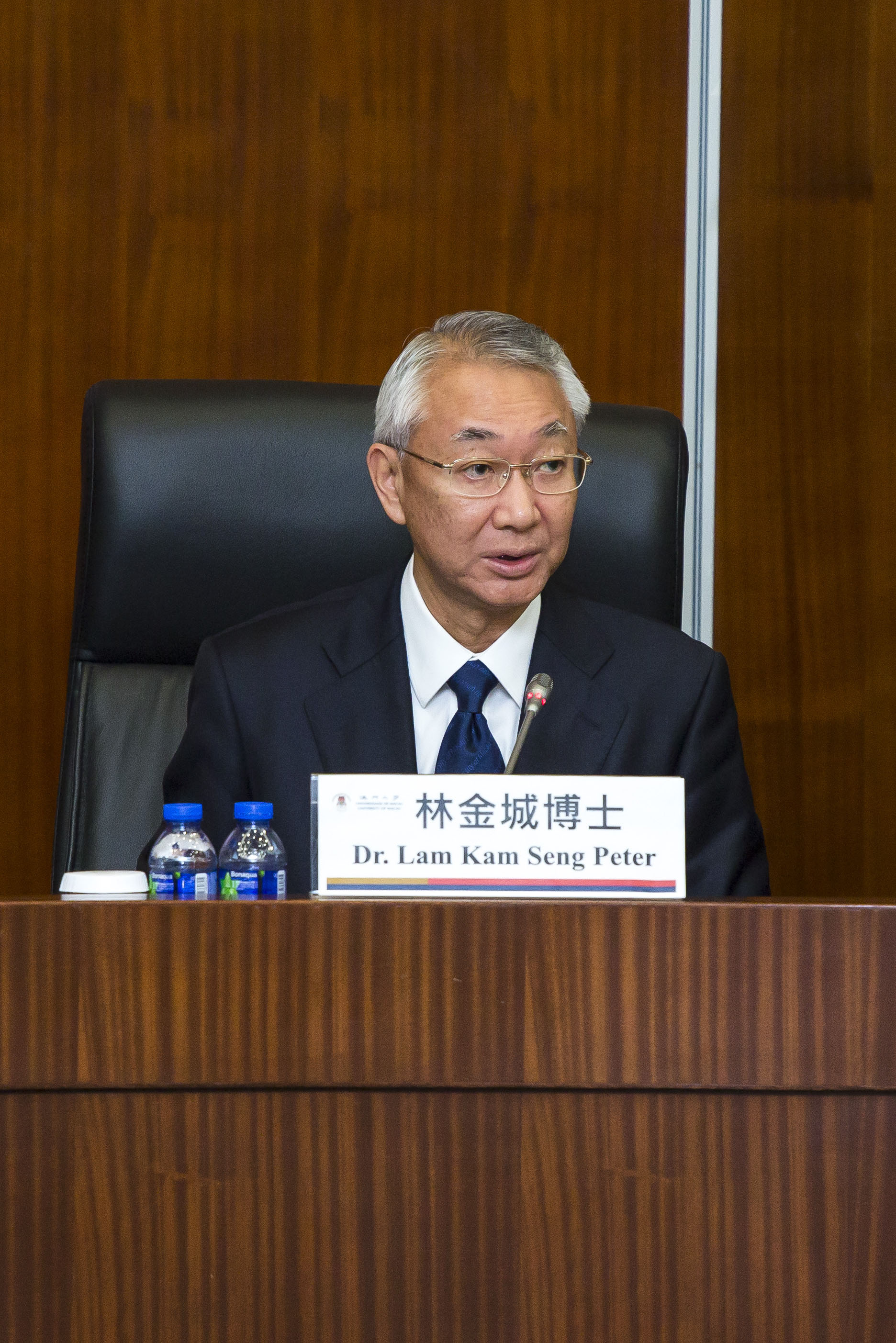 校董會主席林金城報告了校董會在2015/2016年的工作情況。他表示,校董會在過去一年加強了和校內外持分者的溝通和交流,使大學更好地配合社會發展需要,校董會將繼續全力支持和配合大學的發展,吸引外地澳門人才回澳工作,為澳門學子構建發展平台,並持續完善大學的頂層設計和管治模式。