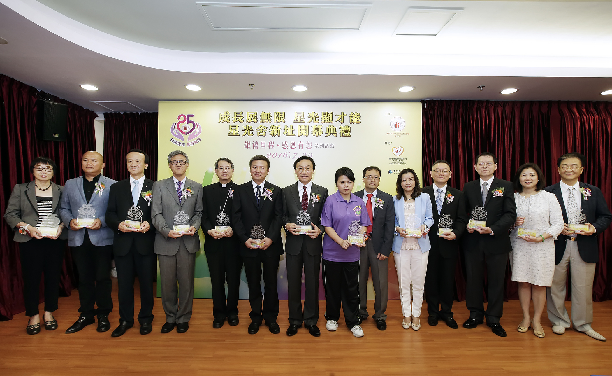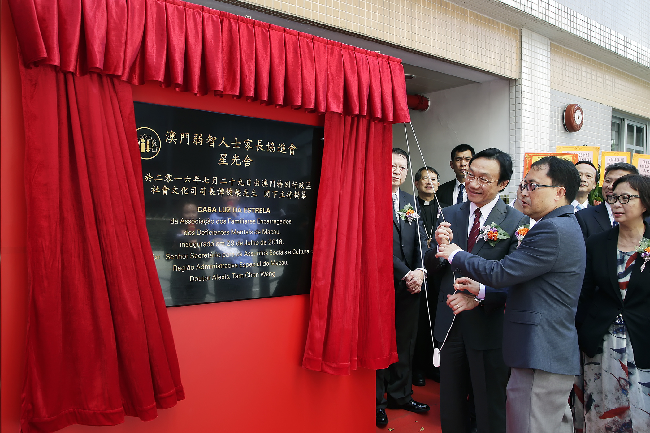 星光舍開幕典禮由社會文化司譚俊榮司長、中央人民政府駐澳門特別行政區聯絡辦公室社會工作部趙奎偉副部長、社會文化司司長辦公室葉炳權主任、社會工作局黃艷梅局長、澳門弱智人士家長協進會曾德岱會長、天主教澳門教區公署李斌生主教、澳區全國人大代表、澳門弱智人士家長協進會劉藝良名譽主席、澳區全國人大代表崔世平先生、全國政協委員兼立法委員陳明金先生、澳門基金會行政委員會區榮智委員、澳門弱智人士家長協進會名譽顧問兼立法會議員陳美儀女士、教育暨青年局郭小麗副局長、澳門弱智人士家長協進會吳在權名譽主席、勞工事務局就業廳陳嘉賢代廳長等人主持。