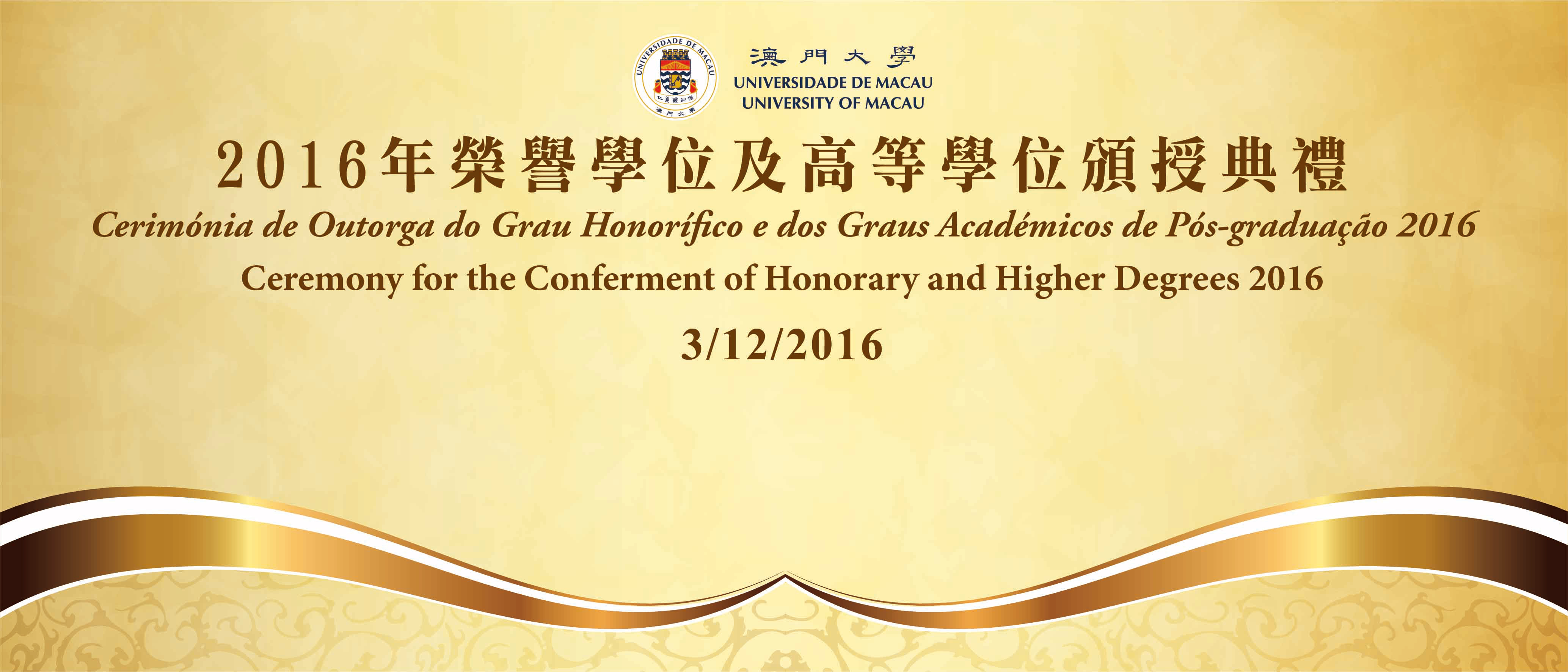 澳門大學榮譽學位及高等學位頒授典禮將於12月3日(星期六)下午5時在該校大學會堂舉行,屆時將頒授博士及碩士學位,並向教育家謝志偉博士頒授榮譽社會科學博士學位,以表彰其對教育及社會發展作出的卓越貢獻。