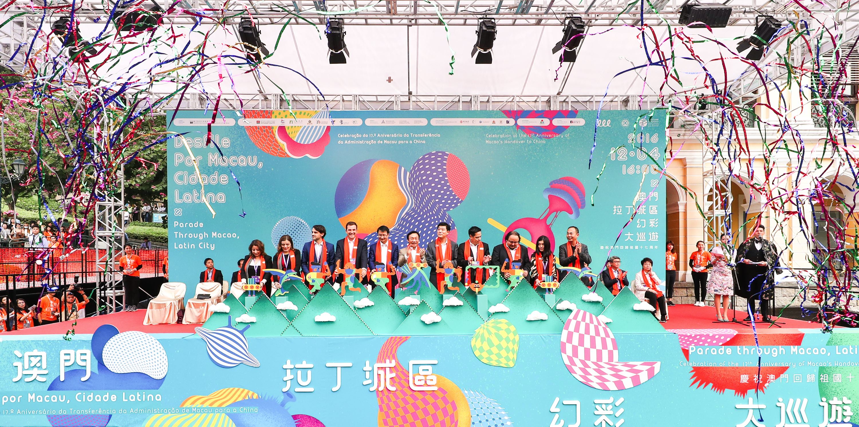 澳門特別行政區政府社會文化司司長譚俊榮、中央人民政府駐澳門特別行政區聯絡辦公室文化教育部副部長浦海龍、外交部駐澳門特別行政區特派員公署辦公室主任楊世俊、烏拉圭駐華大使館大使Juan Fernando Lugris Rodriguez、秘魯駐香港及澳門總領事館總領事Sergio Manuel Avila Traverso、西班牙駐香港總領事館總領事代表署理總領事Avelino Busto Cornejo、厄瓜多爾共和國駐廣州領事館總領事代表Carlos Lopez、葡萄牙駐澳門及香港總領事館總領事代表Clara Pacheco de Oliveira、智利駐香港及澳門總領事館總領事代表Yip Hong Ting, Jacqueline、墨西哥駐香港及澳門總領事館領事Beatriz Eugenia Nava Dominguez及澳門特別行政區政府文化局局長吳衛鳴主持大巡遊開幕式。