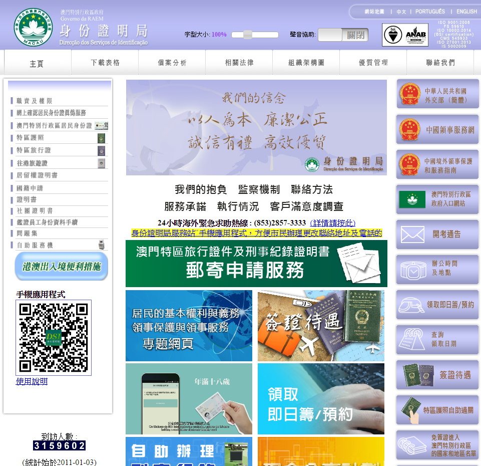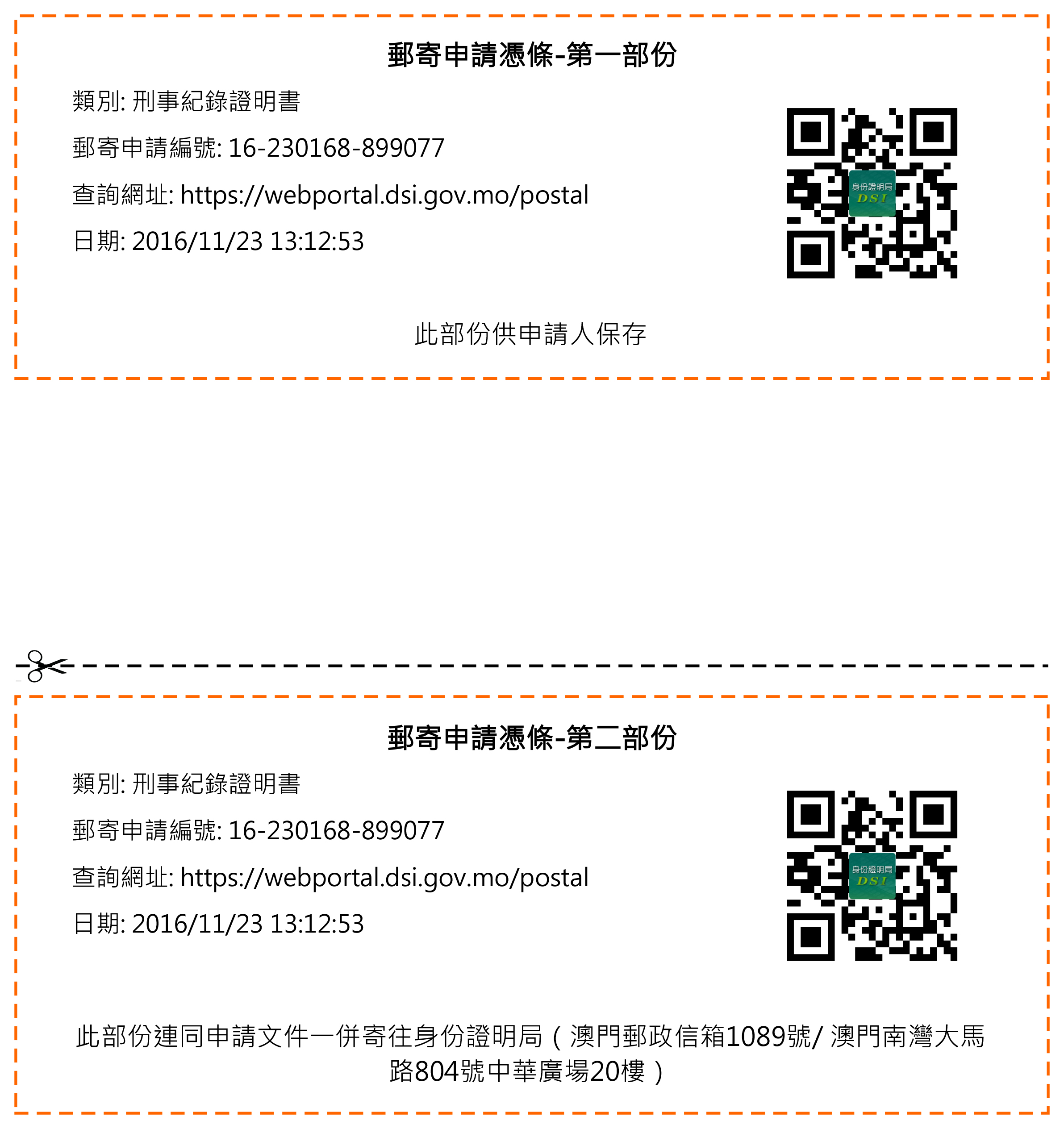 為配合特區政府的施政理念,身份證明局不斷研發電子服務及簡化行政程序,自2016年12月5日起,身份證明局為優化《刑事紀錄證明書》及澳門特區旅行證件的郵寄申請手續,推出網上查詢申請進度及網上付款服務,身處外地的申請人可登入身份證明局網頁內的“郵寄申請服務”系統(webportal.dsi.gov.mo/postal),網上查閱有關郵寄申請的進度及使用信用卡支付申請及郵寄費用。