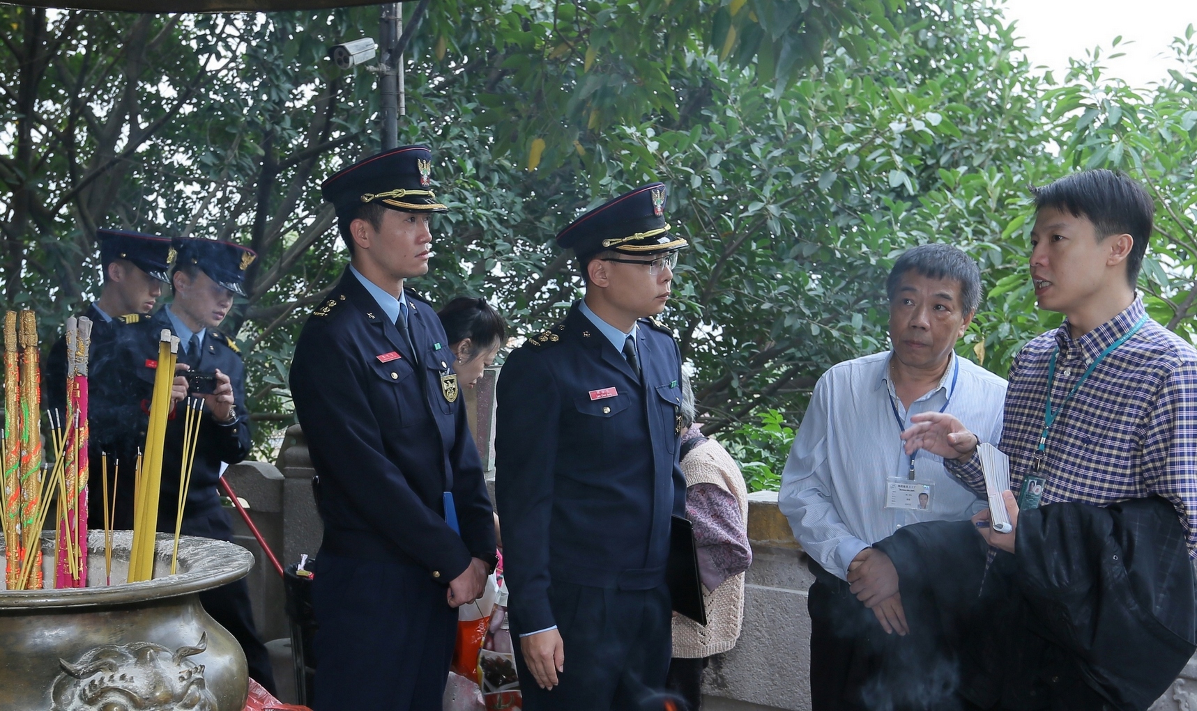 是次巡查由文化局文化遺產保護處代處長蔡健龍、消防局防火廳設計圖分析處代處長林俊生參與,檢查廟宇消防設備,提醒廟宇管理者注意消防安全,派發宣傳海報與單張,並現場講解“廟宇室內香火禁止過夜,夜間必須關閉電源”措施,以加強管理人員的防火安全意識。