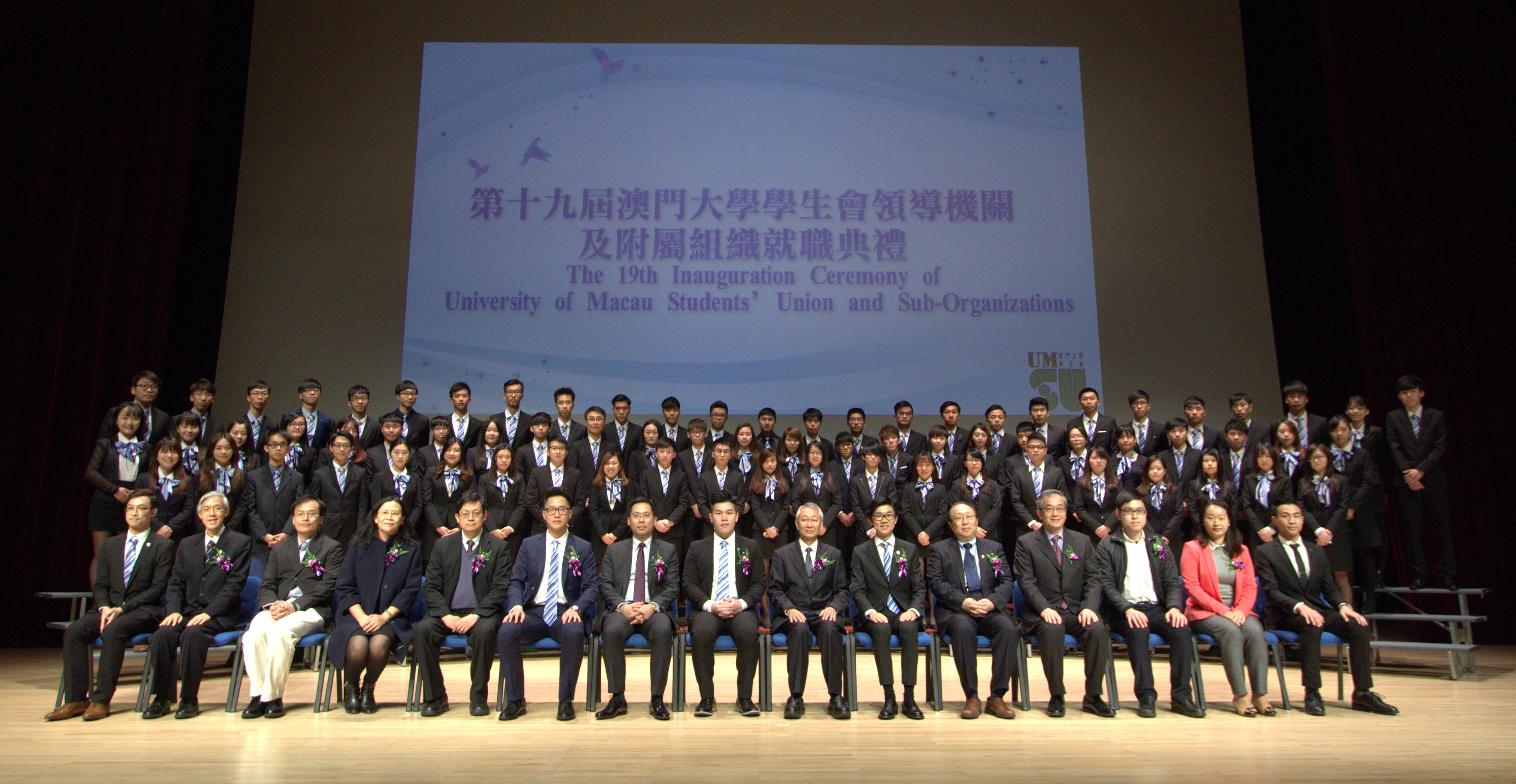 澳門大學學生會昨(8)日舉行第十九屆澳大學生會領導機關及附屬組織就職典禮,新一屆學生會領導機關及77個學生會附屬組織的會長在澳大校董會主席林金城、校長趙偉及一眾嘉賓見證下宣誓。
