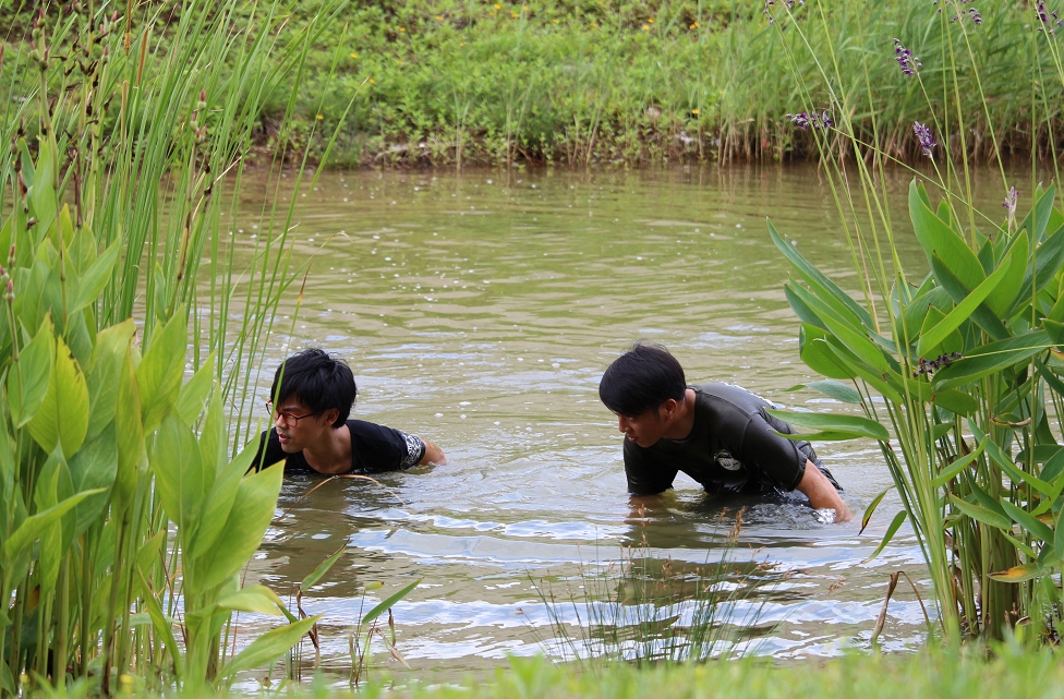 • 由關員扮演的非法入境者踄水進入校區