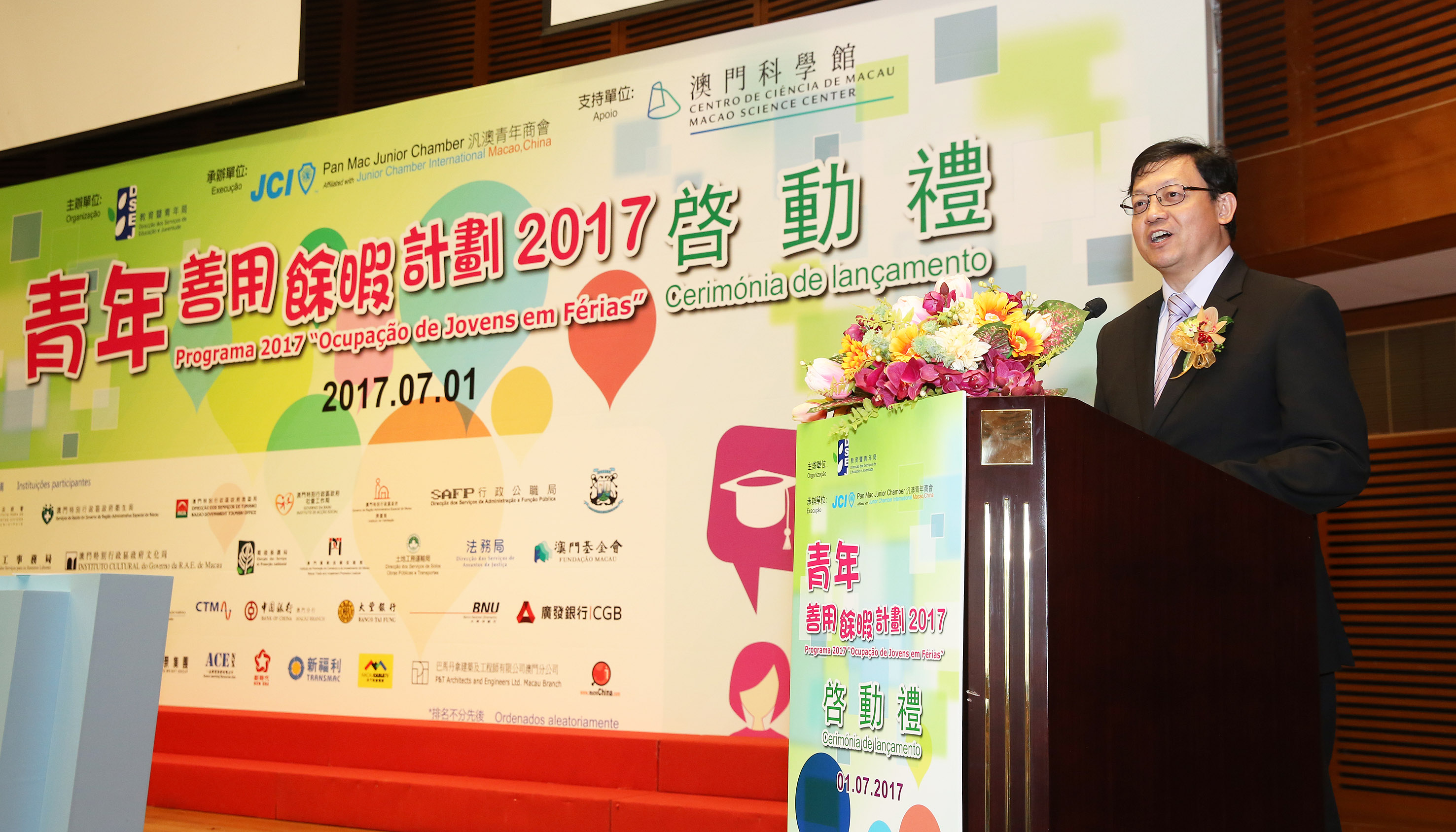 為配合澳門青年政策有關增進社會流動的政策方向,特區政府一直致力創造有利條件,提升青年適應社會變化的能力,協助青年進行生涯規劃,提升其競爭潛力。由教育暨青年局主辦、汎澳青年商會承辦及澳門科學館股份有限公司支持,並由澳門各公共部門和私營機構共同參與推動的“青年善用餘暇計劃2017”啟動禮於7月1日(星期六)下午3時假澳門科學館會議中心順利舉行。
