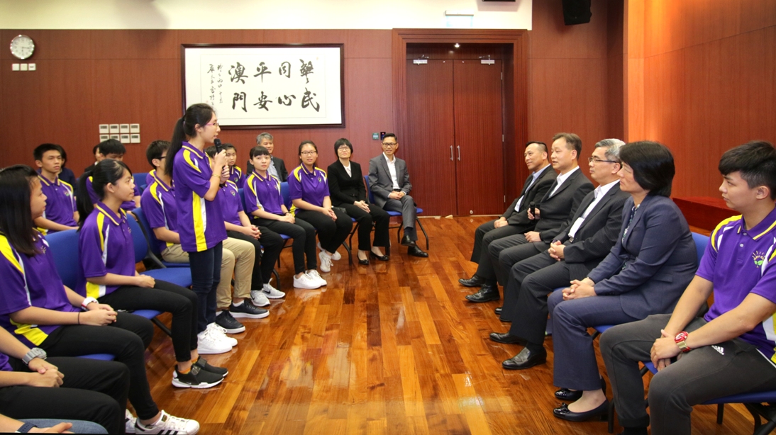 司法警察局“滅罪小先鋒種子計劃”的學員在司警局領導層帶領下拜訪保安司司長黃少澤。黃少澤司長勉勵滅罪小先鋒學員要不斷提升自己、裝備自己,做一個對社會有用的人,用正能量推動社會發展進步。