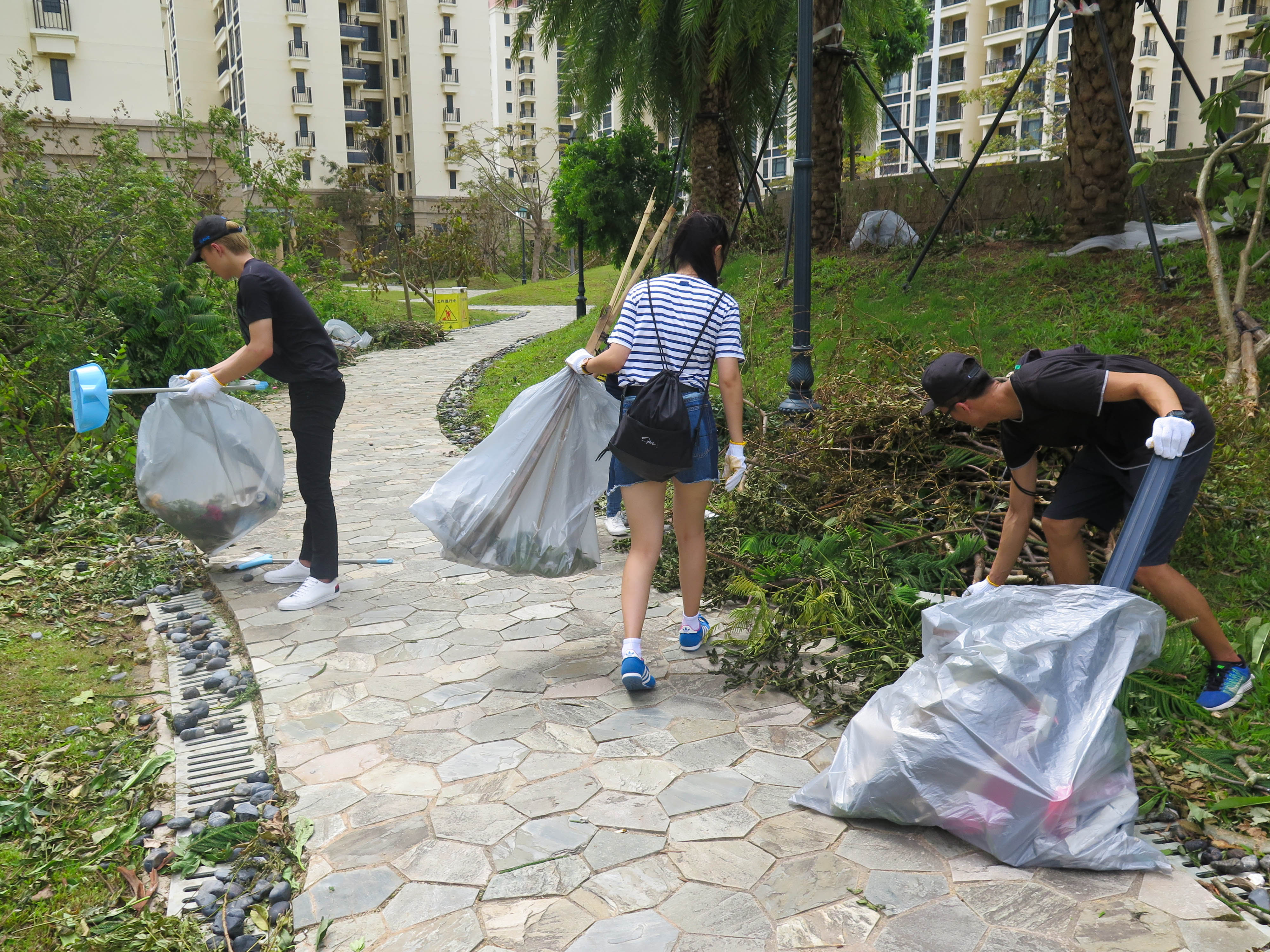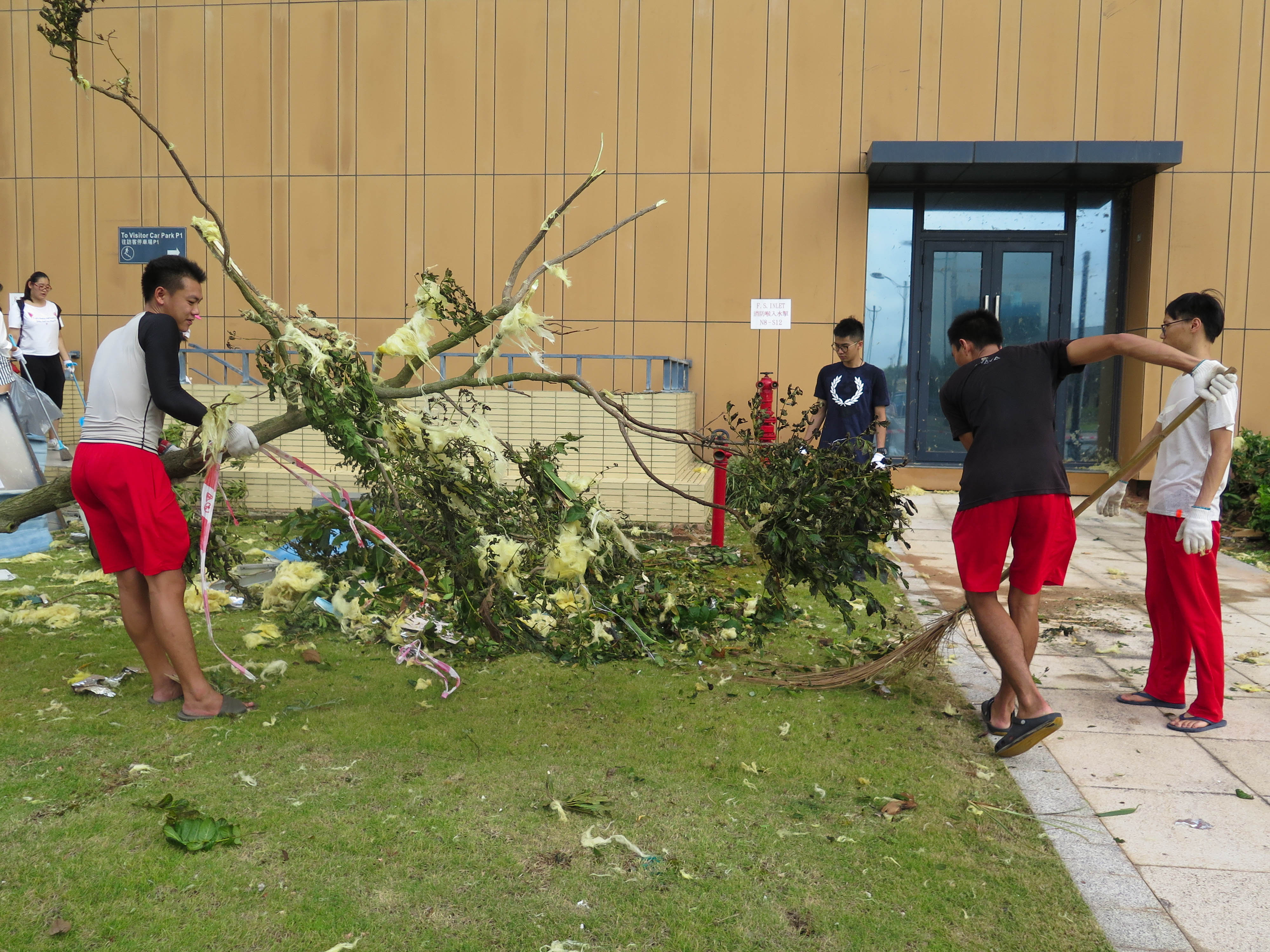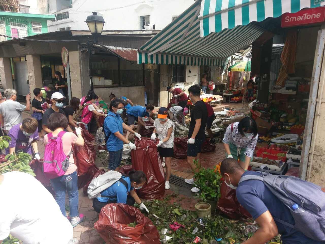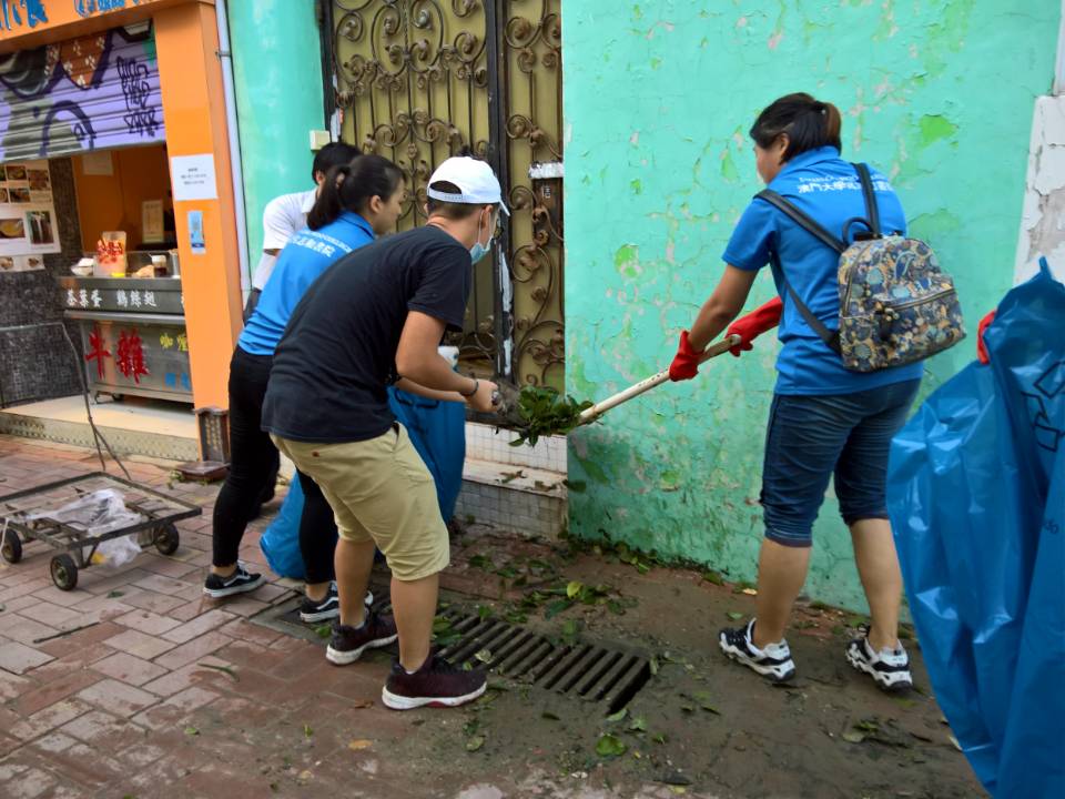 除了澳大校園外,他們還分派同學到路環清潔街道,吳林坤說,「不管是澳門還是澳大, 我們都會盡力。」到路環市區幫忙清理災後垃圾的學生陳煒業表示,看到身邊的警察、消防人員不計較付出,甚至通宵工作搶修,覺得很感動,因此也希望出一分力,令社區、家園儘快回復昔日的美麗。