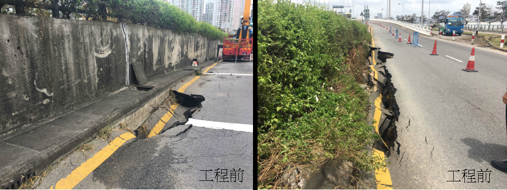 工務局人員早前發現鄰近西灣大橋氹仔出入口的一段東亞運大馬路兩側出現局部路面下陷情況,本局即時開展搶修工作,至今已基本完成回填道路基底,並正進行鋪設瀝青路面,預計明日可完成全部工程。施工期間工程範圍將實施有限度通車,呼籲駕駛者留意。