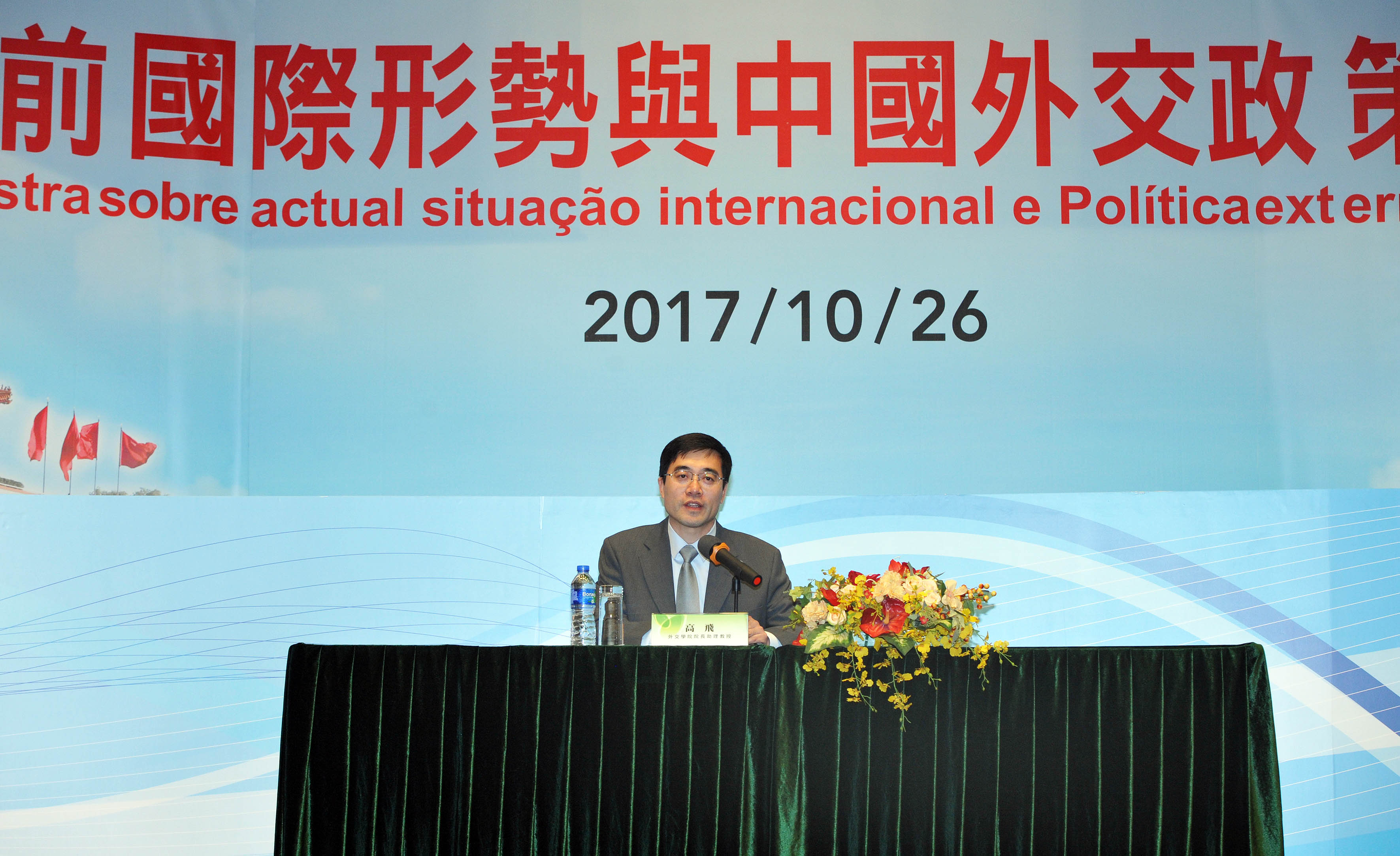 為豐富學生的外交知識,主辦單位特邀從北京來澳擔任今屆外交知識賽評審的外交學院院長助理高飛教授向澳門青年學生分析新形勢下的中國外交。因此,在總決賽開始前,高飛為學生們講授了一場以“當前國際形勢與中國外交政策”為題的講座,現場學生踴躍提問,獲益良多。