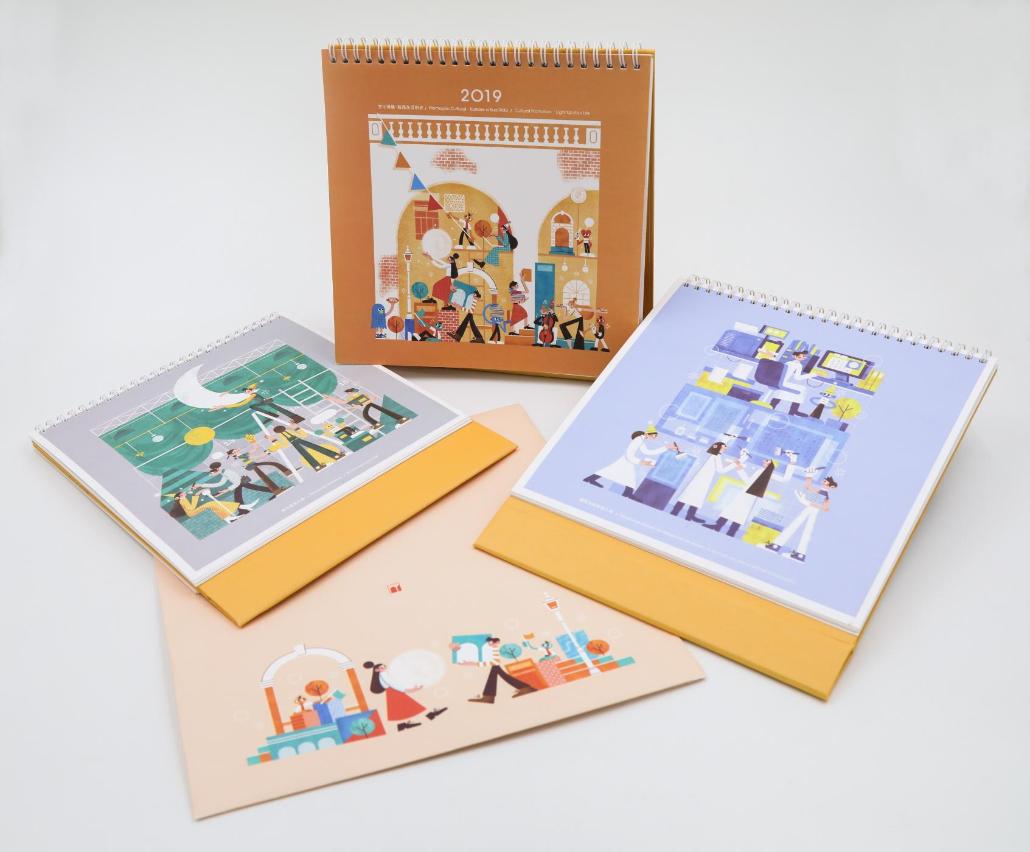文化領域範疇眾多,文化從業人員肩負文化傳播的使命。文化局2019年枱曆頁面插畫以十二項專業領域為主題:文化傳播大使、文化設施導賞員、演藝導師、博物館推廣員、圖書館知識傳播者、文化記錄者、樂師、舞台幕後人員、檔案文獻修復員、古籍管理員、非物質文化遺產技藝傳承人,文化遺產巡查員及技術修復員,簡潔生動地描繪出各個崗位的工作特性,色彩鮮明、色調和諧、造型可愛,加之配上寫作人的文字解讀,除增加大眾對文化工作的了解,促進文化與生活的融合之外,公眾在每一天的時光中都能感受到文化傳播的溫暖力量。