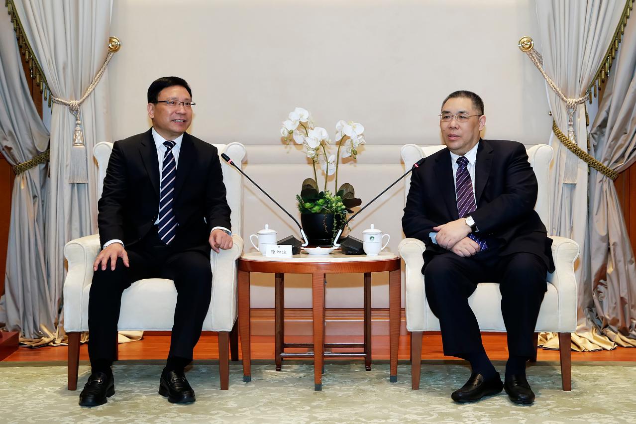 雙方在深澳合作會議舉行前會面。行政長官歡迎陳如桂率領代表團來澳參加會議,共同商議年度合作計劃。他指出,在深圳市委市政府的長期關心和支持下,深澳經過多年合作已打下堅實基礎。行政長官期望雙方繼續鞏固深化各個領域的合作,也要充份發揮參與粵港澳大灣區建設的優勢,共同努力推進在金融等不同領域的合作,促進兩地發展。