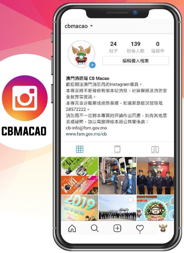 歡迎公眾於Instagram應用程式中搜索「cbmacao」或長按識別下面的二維碼,追蹤澳門消防局的專頁。