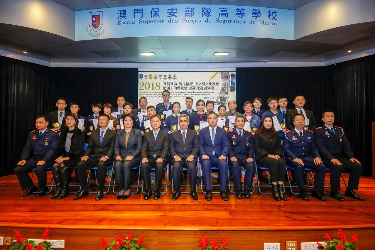 由澳門保安部隊及保安部門聯合舉辦的「互信互助‧警民情深」中文徵文比賽及「鏡頭下的警民情」攝影比賽頒奬禮,於2019年1月18日在保安高校禮堂舉行,頒奬禮由保安司黃少澤司長主持,保安部隊及保安部門、各高等院校、中學等獲獎單位均派出代表,約180人出席。