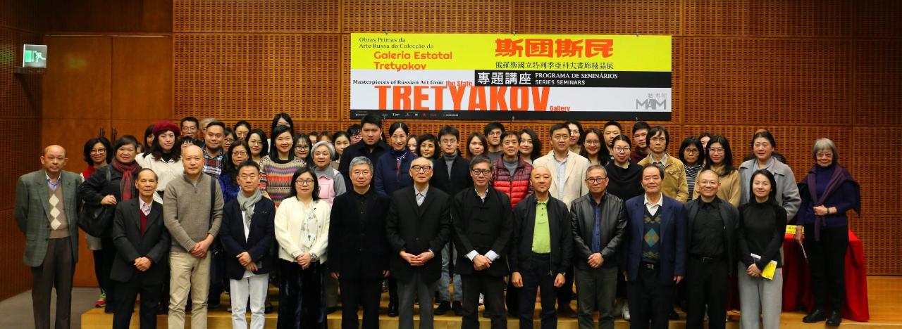 下午兩場專題講座,特請來兩位曾留學俄羅斯列賓美術學院的專家來澳。首場由中國美術家協會常務理事、中央美術學院美術史系教授邵大箴主講“特列季亞科夫畫廊與18至19世紀俄羅斯美術”,揭示18至19世紀俄羅斯美術的特徵和代表人物,特別風行於19世紀前後的俄羅斯巡迴展覽畫派。次場由中央美術學院壁畫系教授孫韜講述“梅利尼科夫與俄羅斯20世紀美術”,以梅利尼科夫的藝術生涯貫穿整個衛國戰爭後俄羅斯美術的轉型期,從而剖析二次世界大戰後俄羅斯油畫藝術的發展。講者資料詳盡,見解精到,有助觀眾瞭解200年來俄羅斯藝術的脈絡和成就。講座吸引近百人出席,包括金日龍、陸曦、吳衛堅、李瑞祥、關權昌、梁藍波、譚可文、汪藍、姚耕、龔正中、龍建年等文藝界人士。