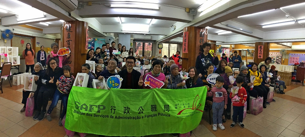 活動於本月9日在台山工聯健頤長者服務中心舉行,目的為推動青年公務人員關心社會,關愛弱勢社群,並向長者送上節日歡樂和關懷。行政公職局公職福利處安排了公務人員關愛小組、青年公務人員以及澳門青年志願者協會近40人參與,藉此加深青年公務人員及義工們對社區共融的認識,關愛社區弱勢人士,並提高他們對社區的歸屬感。