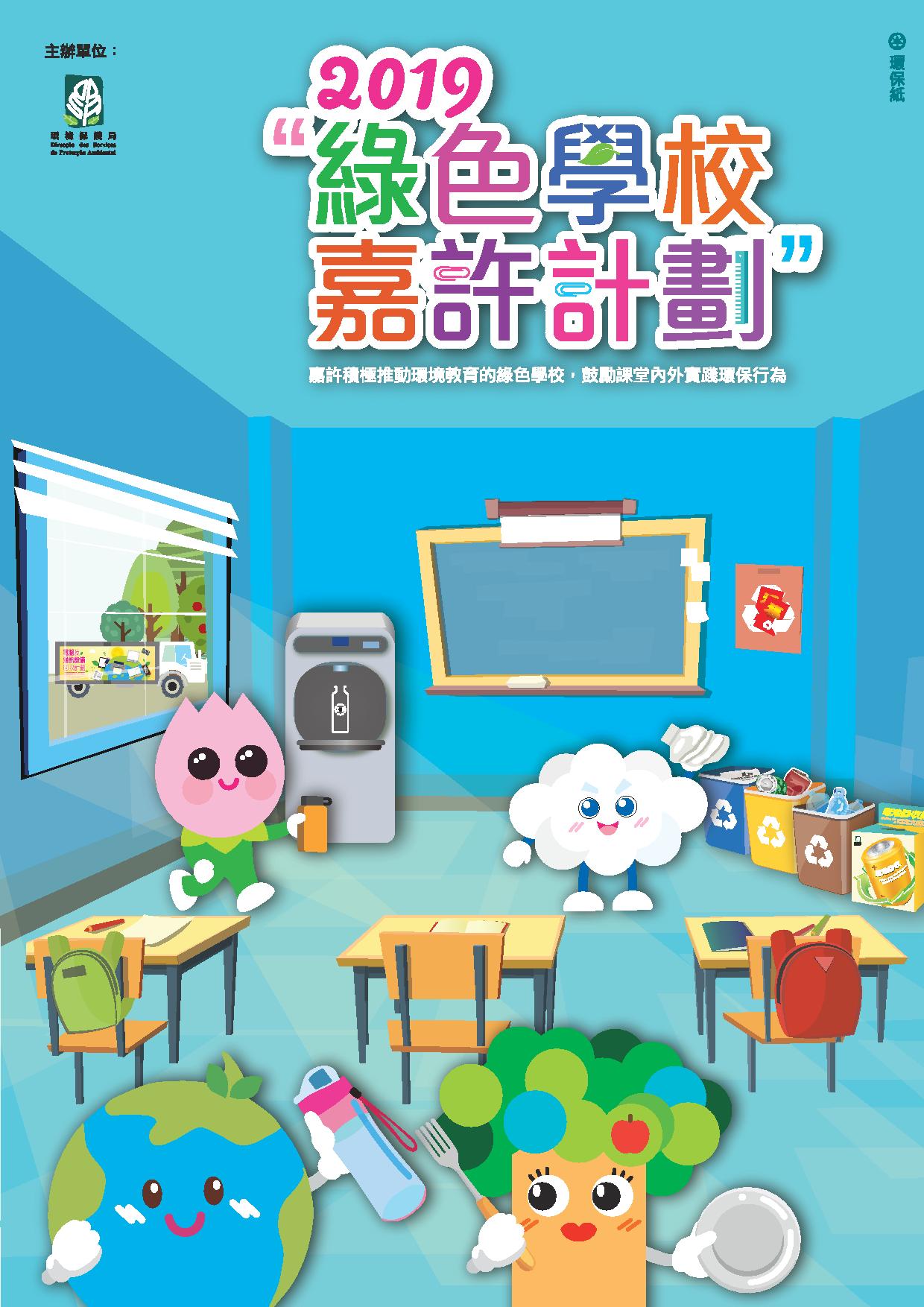 2019“綠色學校嘉許計劃”將於本年3月22日截止報名,有關詳情請瀏覽環境保護局網頁(http://www.dspa.gov.mo)。