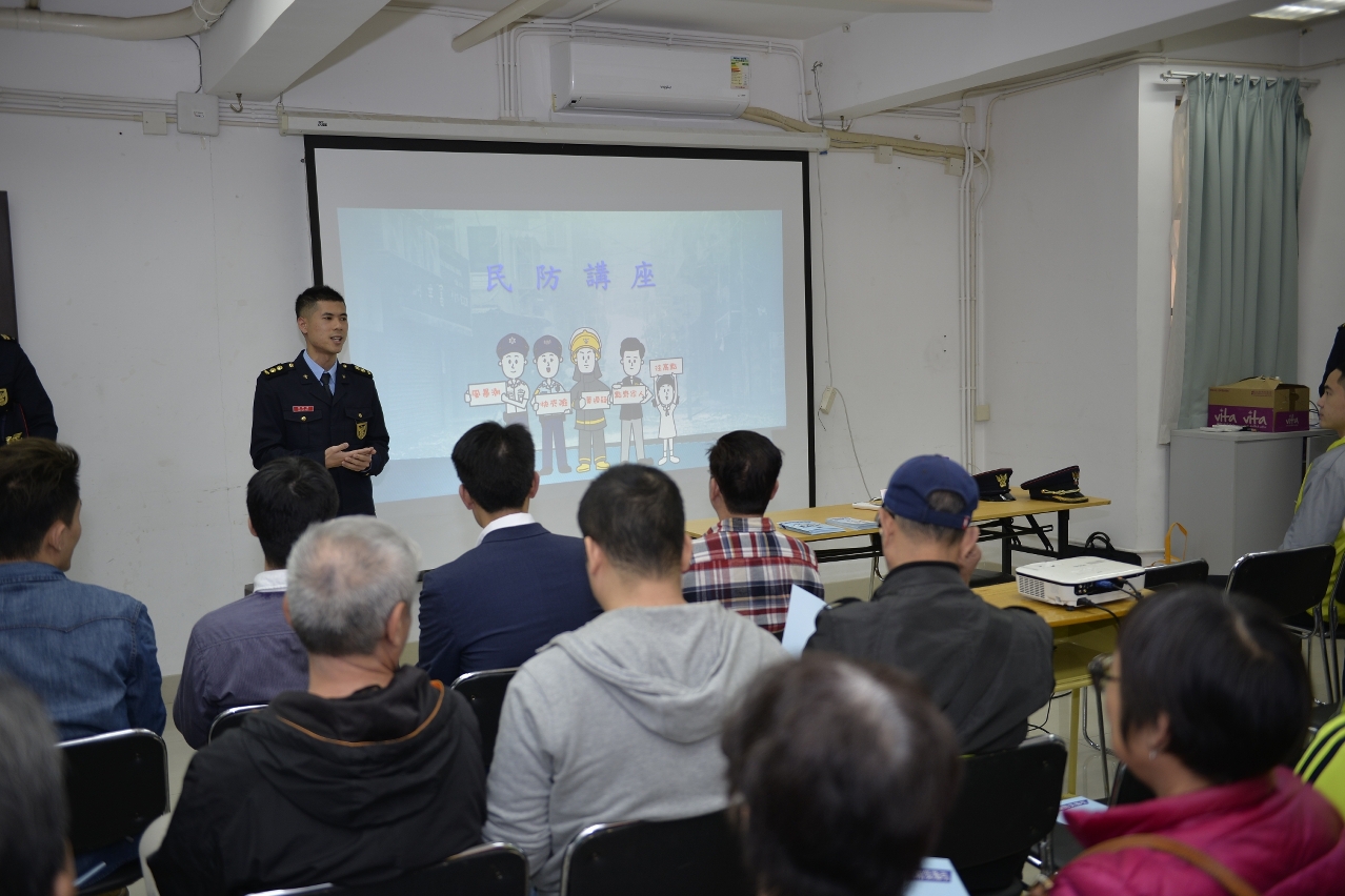 為使演習順利進行,消防局分別於本年03月11日派員拜訪“澳門街坊會聯合總會”,以及於03月12日聯同警察總局拜訪“民眾建澳聯盟”,宣傳及講解由警察總局統籌的“颱風期間風暴潮低窪地區疏散撤離演習”設立之目的、啟動時的工作安排和注意事項,亦介紹了“颱風期間風暴潮低窪地區疏散撤離計劃”等,兩場宣講會合共約有80名居民、坊會及團體負責人參與。