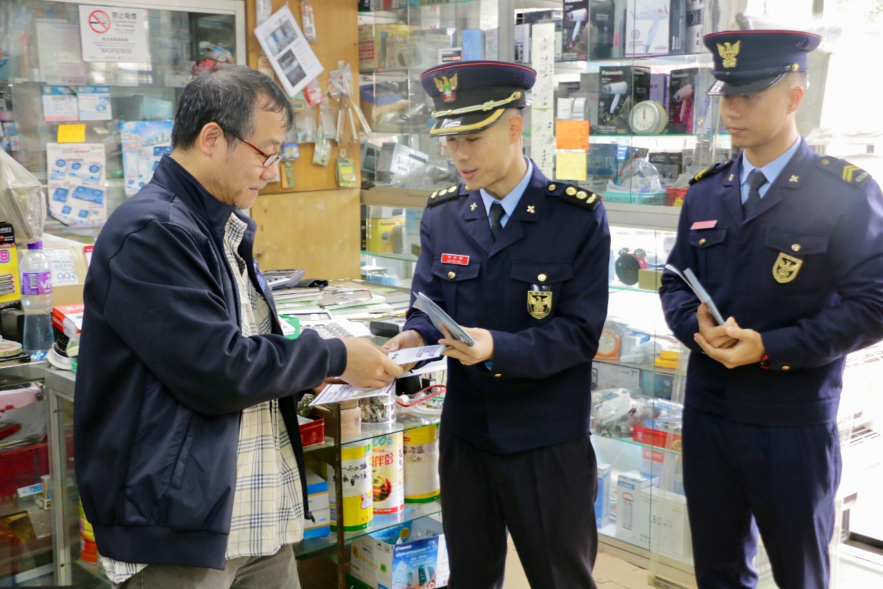 隨後,消防人員與該兩會負責人分別前往筷子基區、青洲區、台山區一帶低窪地區,向居民和商戶宣傳“颱風期間風暴潮低窪地區疏散撤離演習”、撤離計劃的內容及注意事項,派發相關宣傳單張及防災知識小冊子;提醒居民及商戶應做好日常應急準備,存放適量的防災及應急物品,以應對突如其來的災害;最後,消防人員帶領兩會的負責人參觀青洲避險中心,由社工局代表介紹中心的設施和運作。