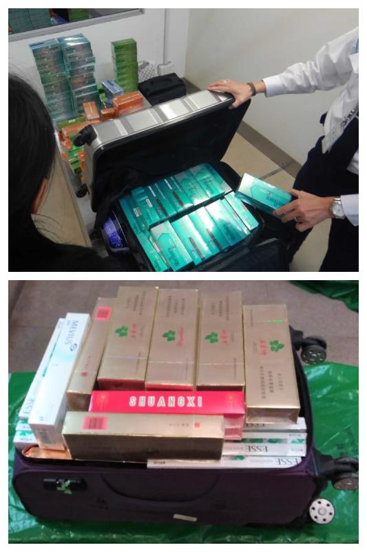 回歸至聖誕長假期間,海關加強口岸檢查工作,先後在澳門國際機場及關閘口岸截獲兩宗違規攜帶大量煙草類物品入境案件,分別查獲30,000支“均化”煙草(電子煙煙彈)及13,000支未完稅香煙,海關已依法對兩名涉案者作出起訴。