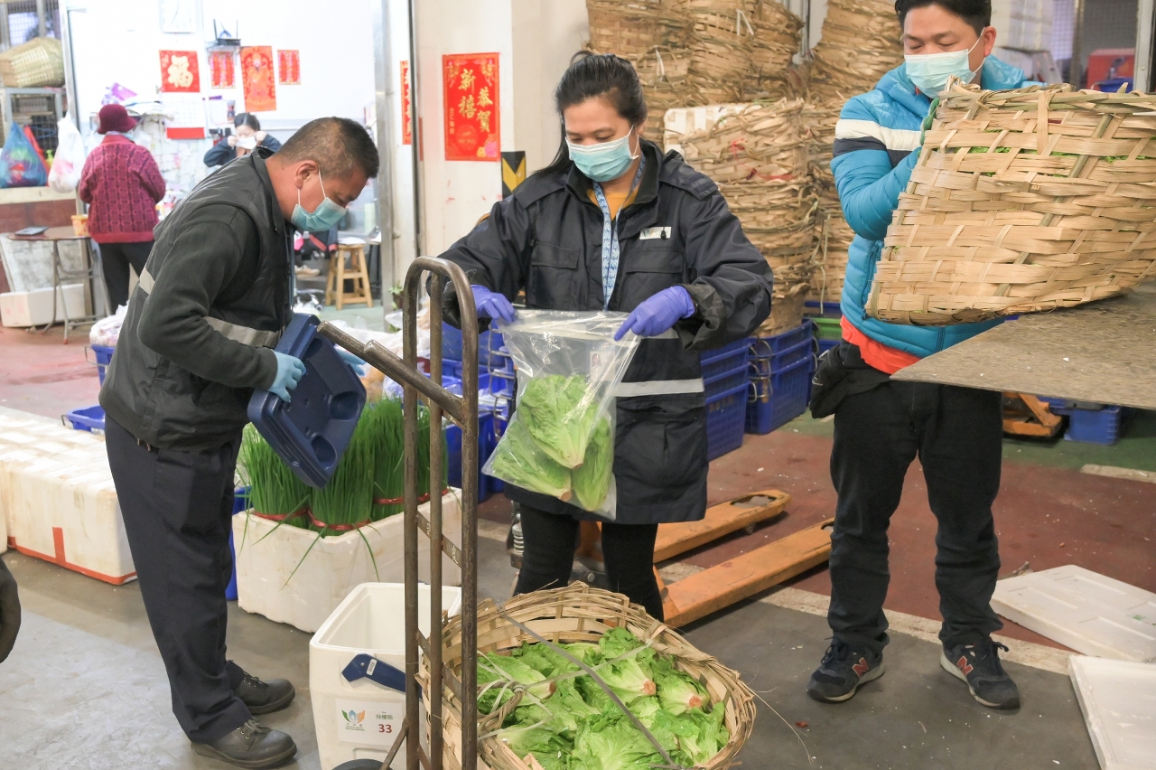 雖然疫情嚴峻,每天清晨,市政署、海關人員及業界人士,仍在批發市場內努力工作,以配合特區政府在食品方面保供應、保質量、保物價的承諾;有他們的付出,我們大可放心,毋須搶購、恐慌!