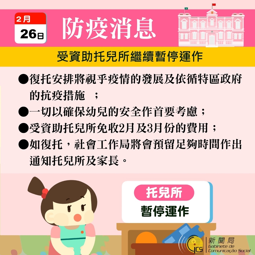 受資助托兒所繼續暫停運作