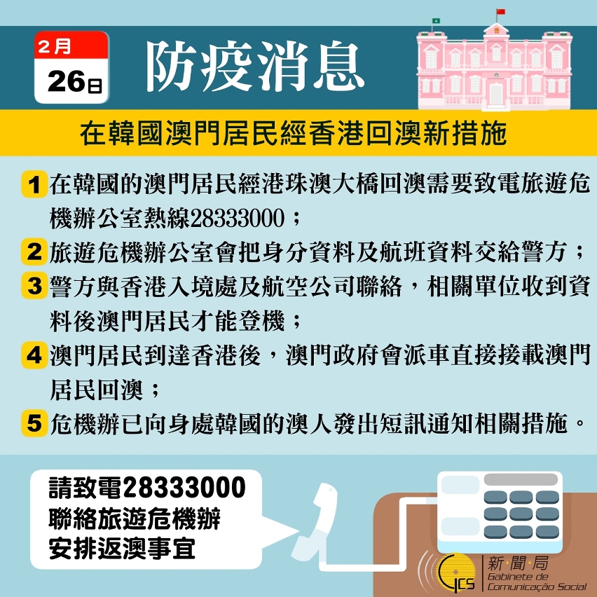 在韓國澳門居民經香港回澳新措施