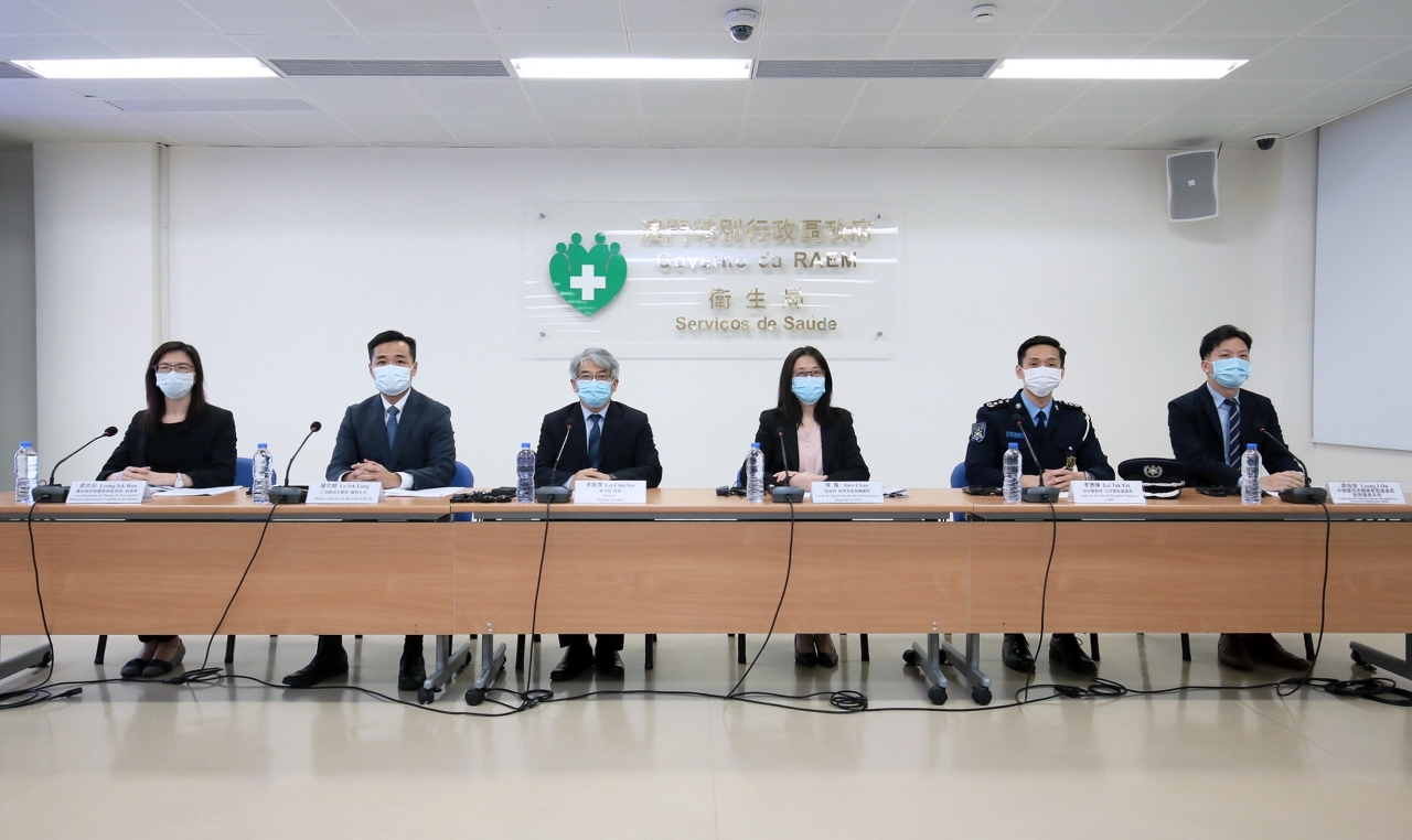 新型冠狀病毒感染應變協調中心(下稱應變協調中心)於今(29)日舉行例行記者會,衛生局李展潤局長、仁伯爵綜合醫院羅奕龍醫務主任、旅遊局執照及監察廳陳露廳長、教育暨青年局中學暨技術職業教育處梁怡安處長、治安警察局公共關係處李德輝處長、疾病預防控制中心傳染病防制暨疾病監測部梁亦好協調員共同會見傳媒。
