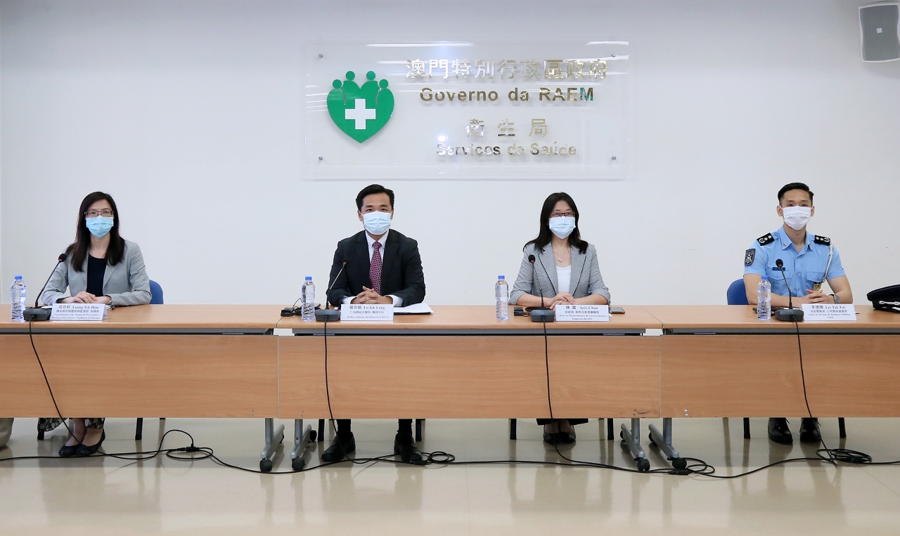 新型冠狀病毒感染應變協調中心於今(16)日舉行例行記者會,仁伯爵綜合醫院羅奕龍醫務主任、旅遊局執照及監察廳陳露廳長、治安警察局公共關係處李德輝處長、疾病預防控制中心傳染病防制暨疾病監測部梁亦好協調員共同會見傳媒。