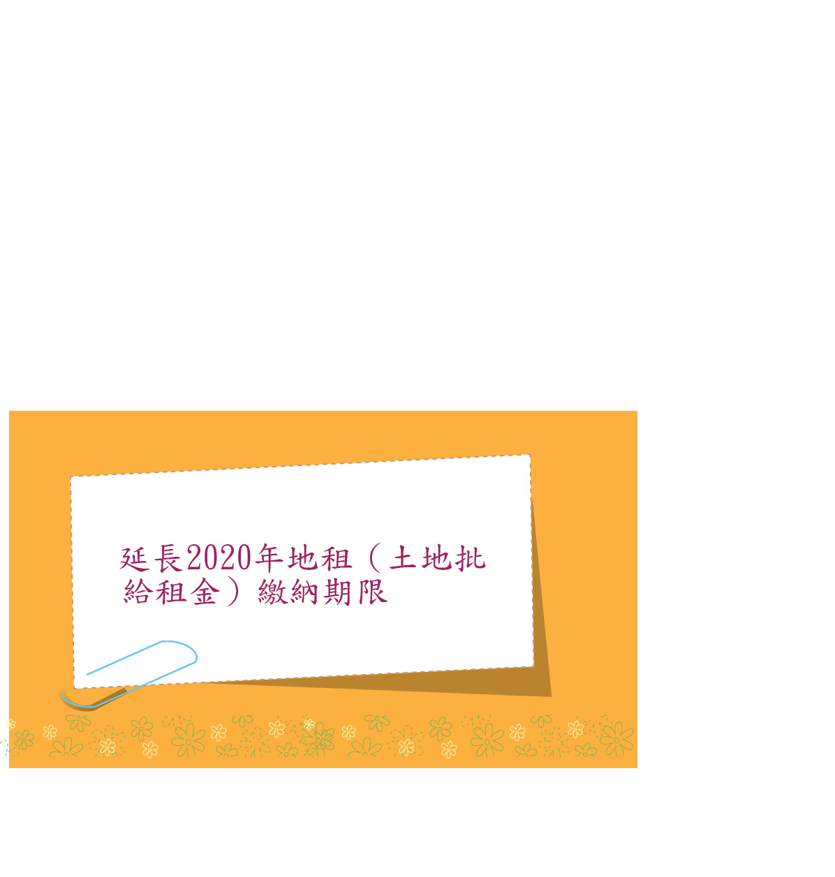 鑑於5月31日為星期日,2020年地租(土地批給租金)最後之繳納期限延至6月1日(星期一)止,為免增加輪候時間或因逾期繳納而附加之過期利息和罰款,財政局呼籲倘仍未繳納上述地租之納稅人,請儘快利用財政局提供的繳稅方式繳納地租,亦可於辦公時間內,到指定銀行,或位於南灣大馬路財政局大樓、龍成大廈、政府綜合服務大樓及離島政府綜合服務中心收納處繳交。