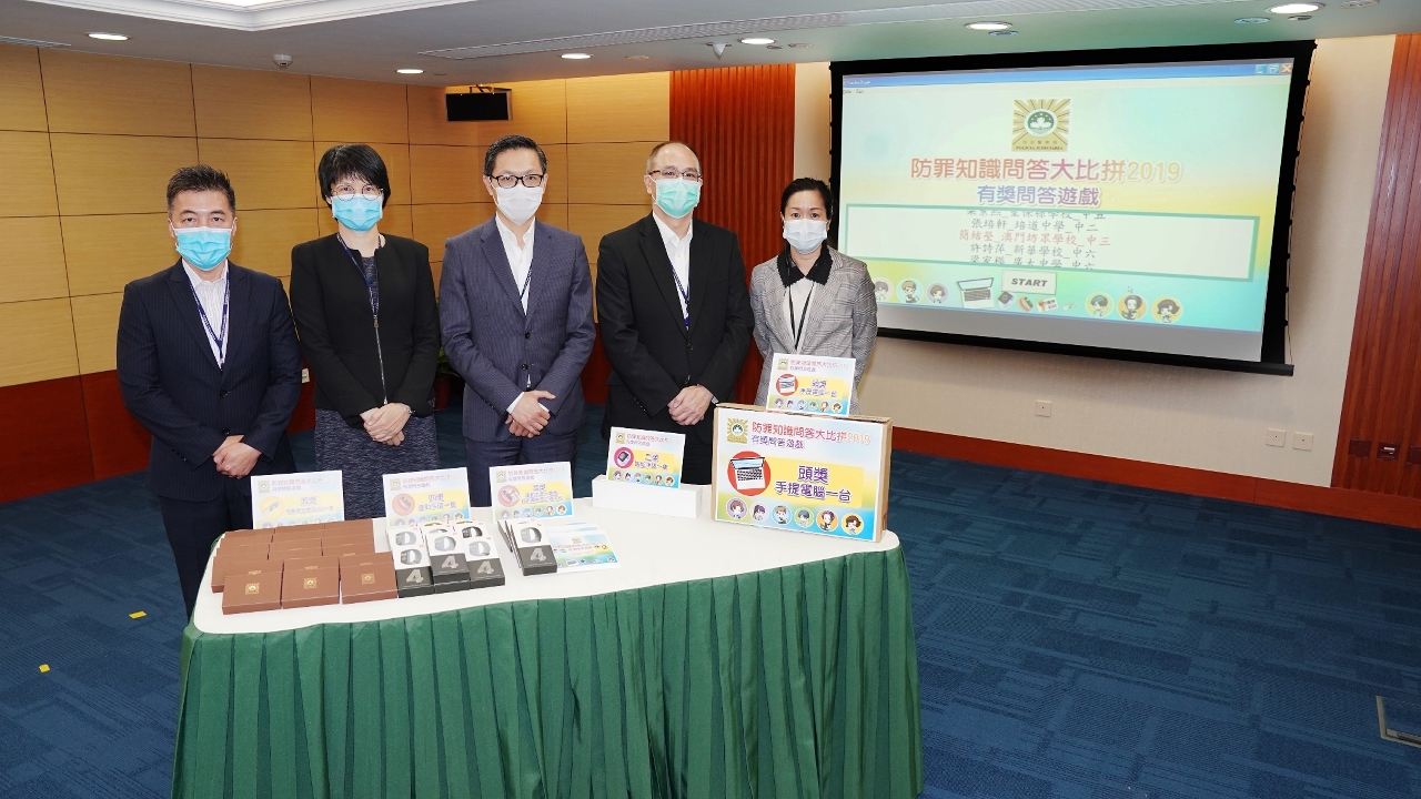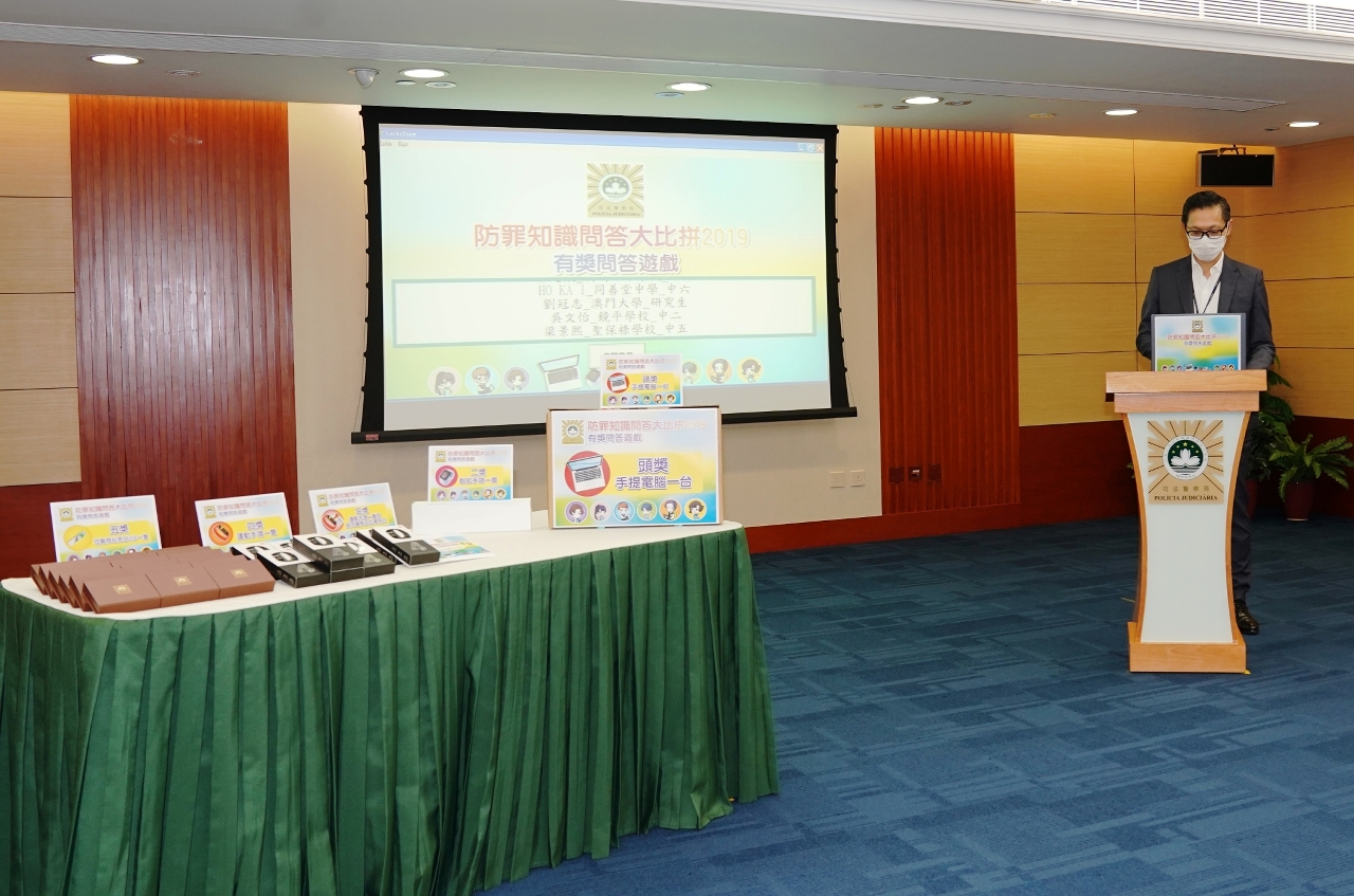 司法警察局舉辦的“防罪知識問答大比拼2019”有獎問答活動已於2020年2月11日結束,並於 3月舉行了抽獎儀式,頒獎儀式因受新型冠狀病毒肺炎疫情影響而延至日前進行。是次活動主要對象為就讀本澳中學及大專院校的學生,旨在深化青少年的防罪守法意識,提升他們對各類犯罪的警覺性和防罪能力。