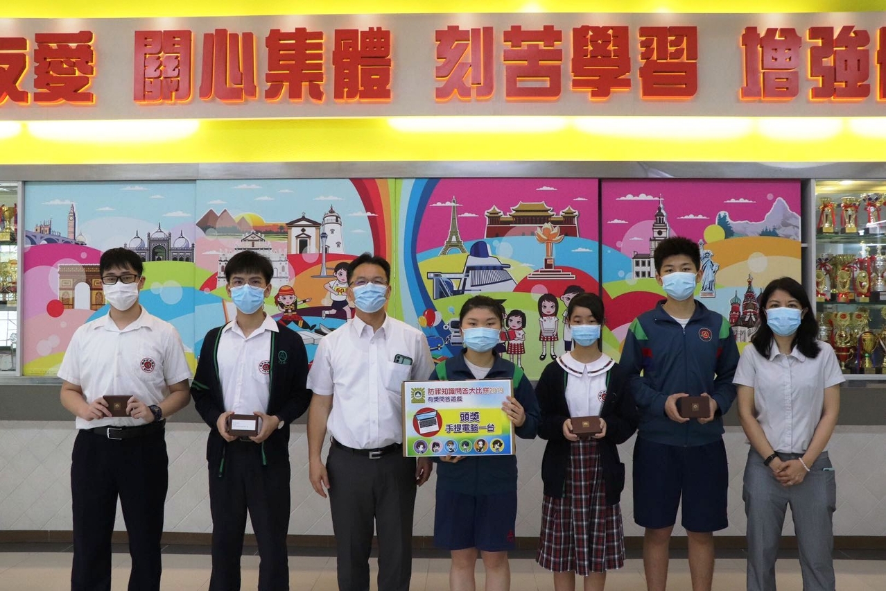 因受新型冠狀病毒肺炎疫情影響,為避免人群聚集,司警局將原定的頒獎儀式延至本澳中學復課後進行。日前,司警局按照得獎名單將獎品送到各校,再由校方代表頒發給得獎者。有得獎的同學表示,平日也經常留意警方發放的防罪資訊,並會與家人朋友分享,當得知司警局舉辦防罪知識問答活動,馬上報名參與,對於能夠獲獎感到非常欣喜;也有得奬的同學表示經由朋友推介參與此次活動,並認為活動以網上形式進行,十分便捷,且切合年輕人瀏覽和接收資訊的習慣,希望局方日後多透過網絡平台進行防罪宣傳。