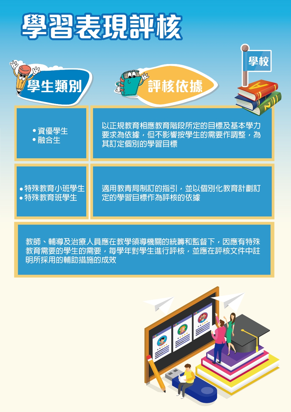 訂定特殊教育應遵守的基本原則,以及評估有特教需要學生的準則,包括須用多元評量原則,使用標準化評量工具,以及考慮學生的成長背景及學習經驗等。